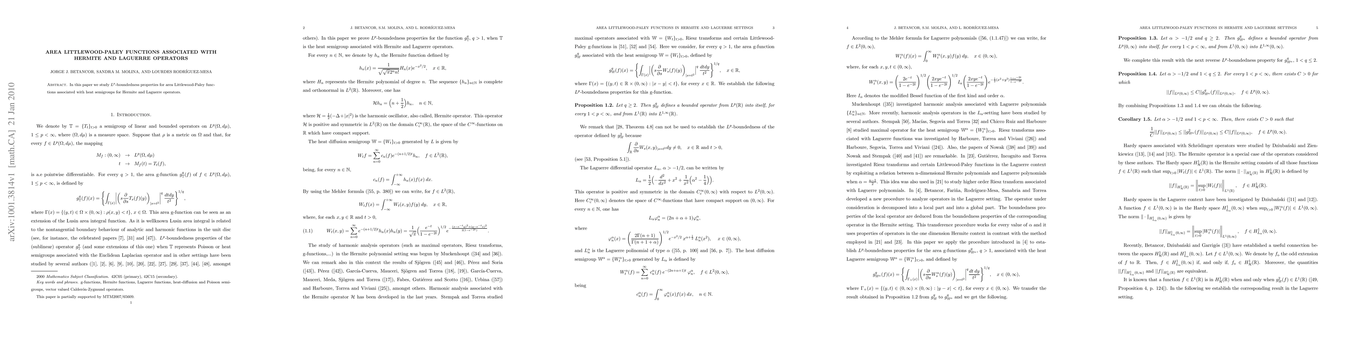 Summary: This paper investigates the Lp-boundedness properties of area Littlewood-Paley functions linked to the heat semigroups of Hermite and Laguerre operators, providing insights into their analytical behavior.
