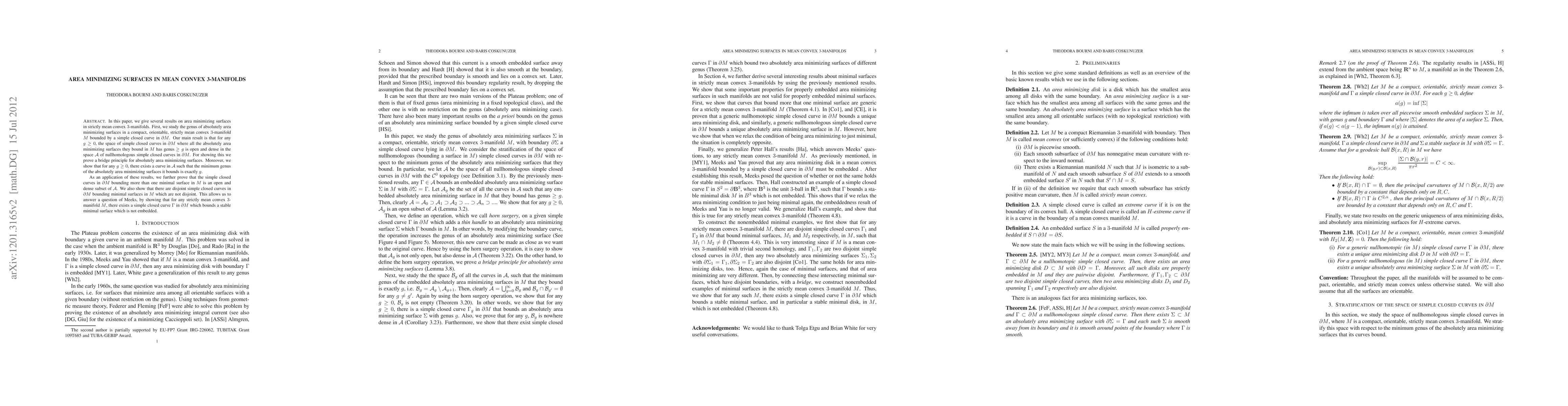 This paper investigates area minimizing surfaces in strictly mean convex 3-manifolds, proving that for any genus g, the space of simple closed curves where all bounded minimizing surfaces have genus ≥g is open and dense. It also demonstrates the existence of curves bounding minimizing surfaces of exactly any genus g, and shows that curves bounding more than one minimal surface are an open and dense subset.