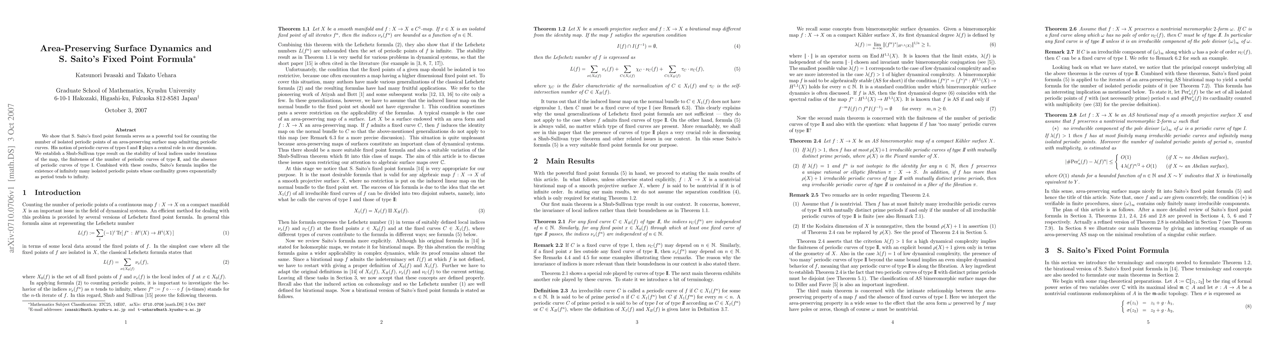 This paper demonstrates that S. Saito's fixed point formula effectively counts isolated periodic points in area-preserving surface maps with periodic curves. It establishes the stability of local indices, finiteness of type II curves, and absence of type I curves, leading to the conclusion of exponentially growing periodic points.