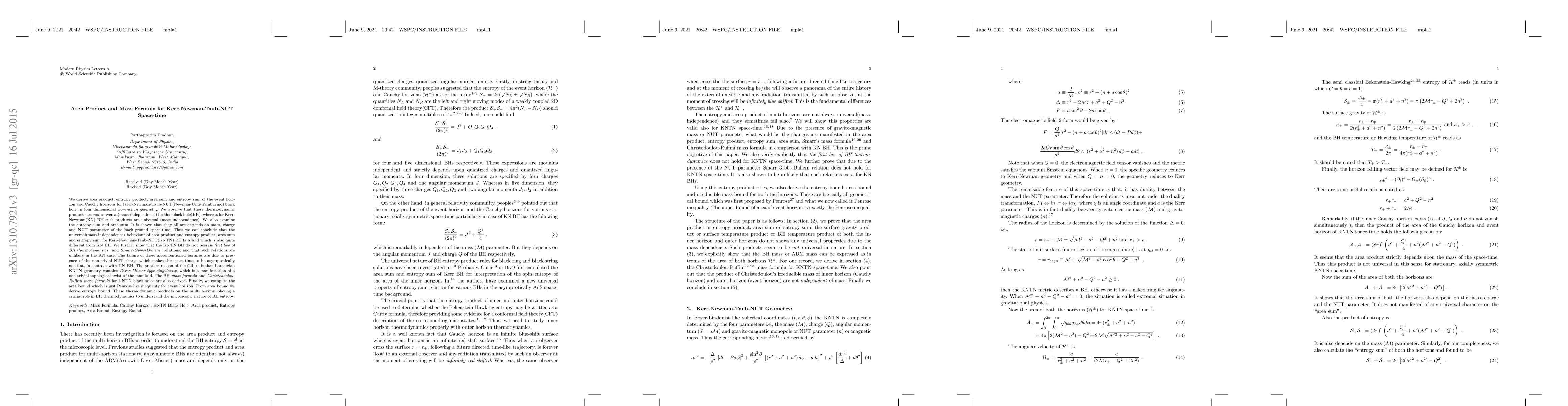 Researchers investigated thermodynamic properties of Kerr-Newman-Taub-NUT black holes, finding that area product and entropy product are not mass-independent, unlike their counterparts in Kerr-Newman black holes, due to the presence of non-trivial NUT charge and Dirac-Misner type singularity.