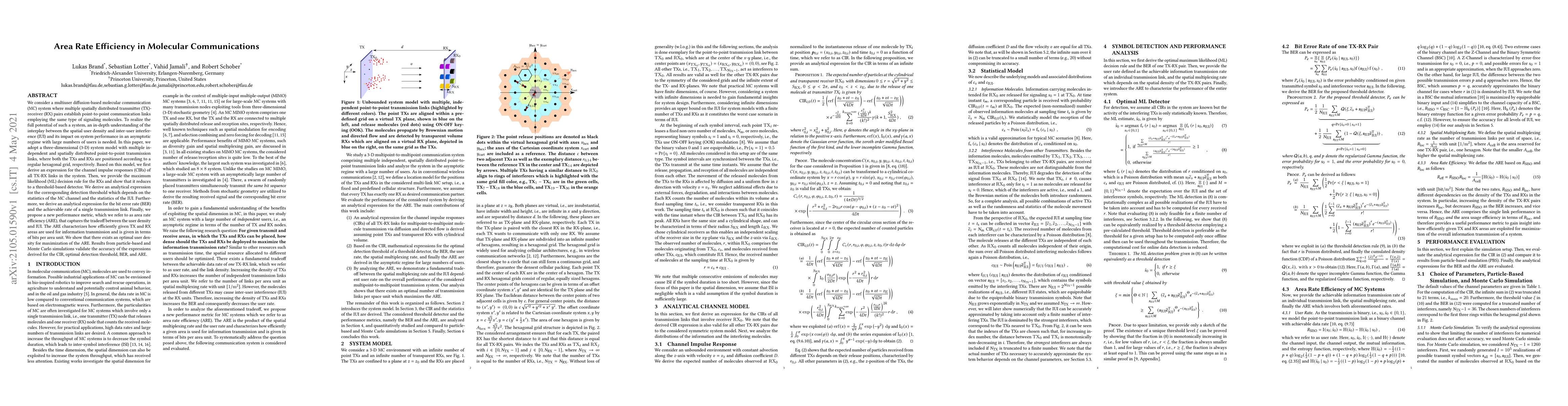 A research paper explores the efficiency of molecular communication systems with multiple users, finding a new performance metric called area rate efficiency that balances user density and interference, and shows that an optimal user density can be achieved for maximum efficiency.