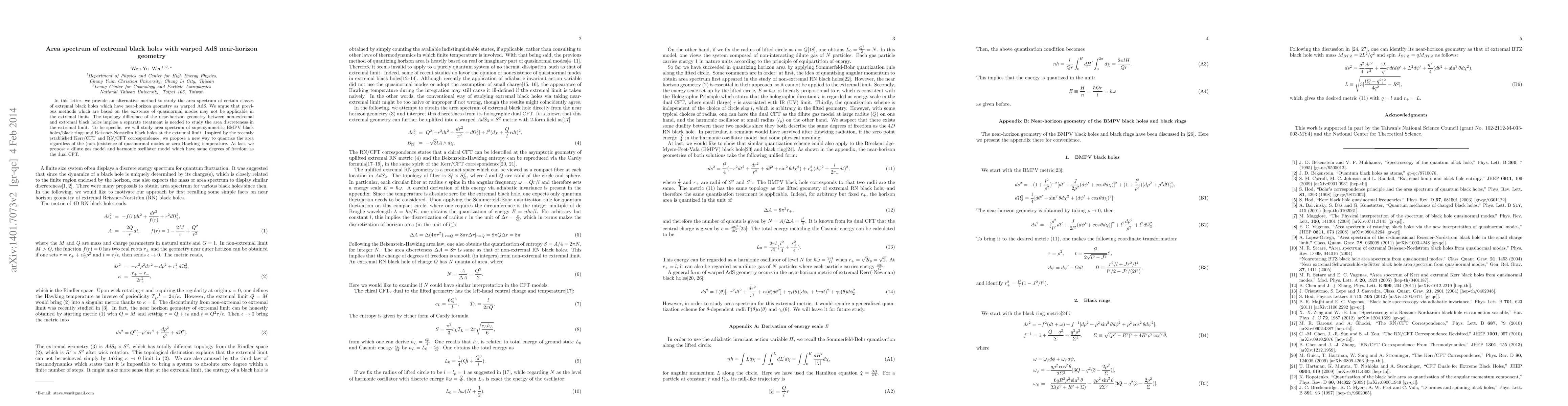 This paper proposes a novel method to determine the area spectrum of extremal black holes with warped AdS near-horizon geometry, arguing against the applicability of previous quasinormal mode-based approaches in the extremal limit. It introduces a new quantization technique inspired by the Kerr/CFT and RN/CFT correspondences, and proposes models that match the degrees of freedom of the dual conformal field theory.