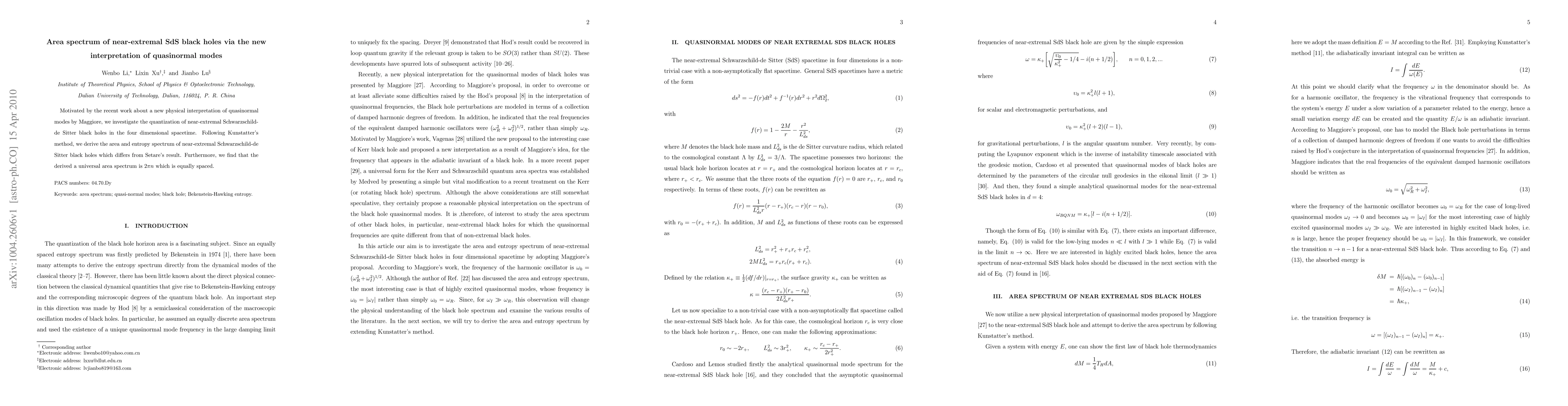 This paper quantizes the area spectrum of near-extremal Schwarzschild-de Sitter black holes using a new interpretation of quasinormal modes, deriving an equally spaced universal area spectrum of $2\pi n$. This method differs from previous results and aligns with recent advancements in quasinormal mode theory.