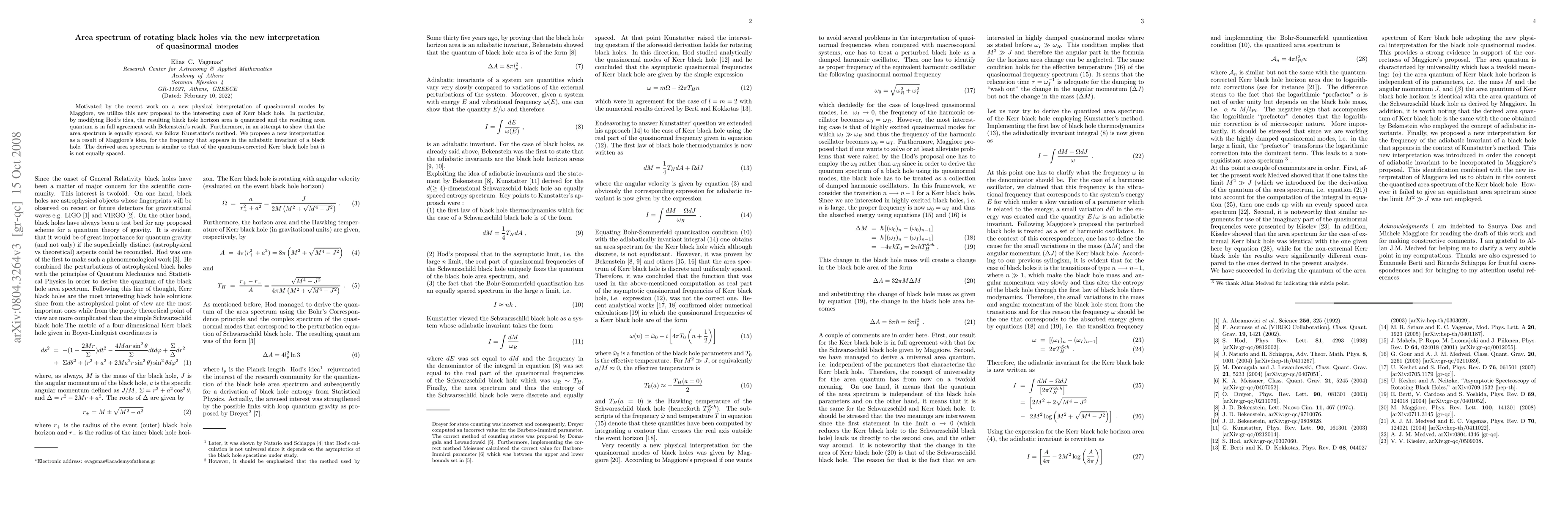 The research quantizes the area of a Kerr black hole using a new interpretation of quasinormal modes, aligning with Bekenstein's result. Unlike the quantum-corrected Kerr black hole, the derived area spectrum is not equally spaced, differing from Kunstatter's method.