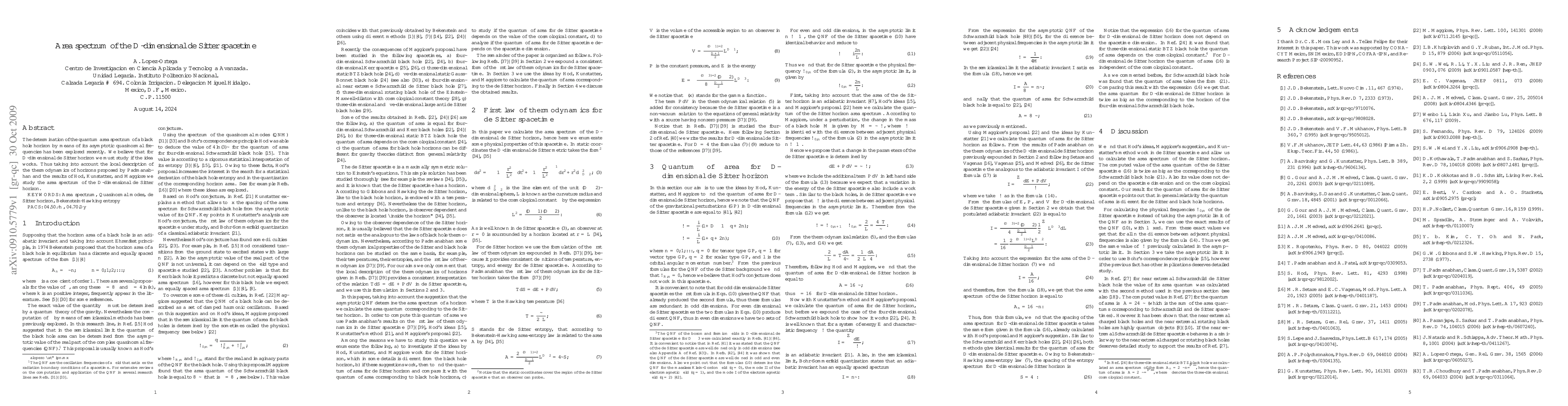 This paper investigates the quantum area spectrum of a D-dimensional de Sitter horizon, exploring whether the method used for black hole horizons can be applied. The study incorporates local thermodynamic descriptions and recent findings to analyze the area spectrum.