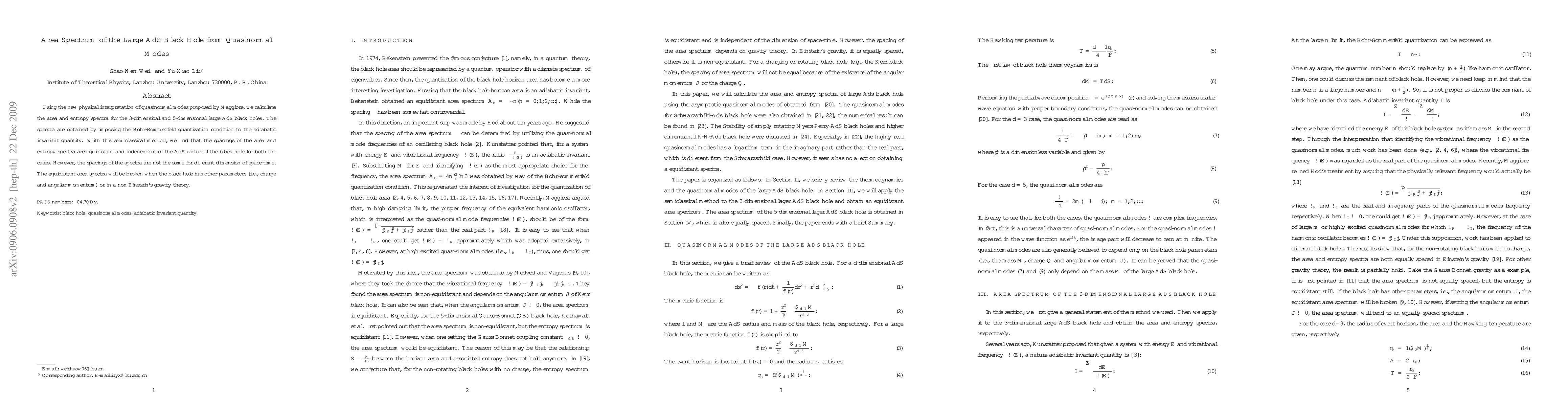 This paper calculates the area and entropy spectra for large AdS black holes in 3D and 5D using quasinormal modes and Bohr-Sommerfeld quantization, finding equidistant spectra independent of AdS radius but differing by dimension. The equidistant spectra break down with additional parameters or non-Einstein gravity.