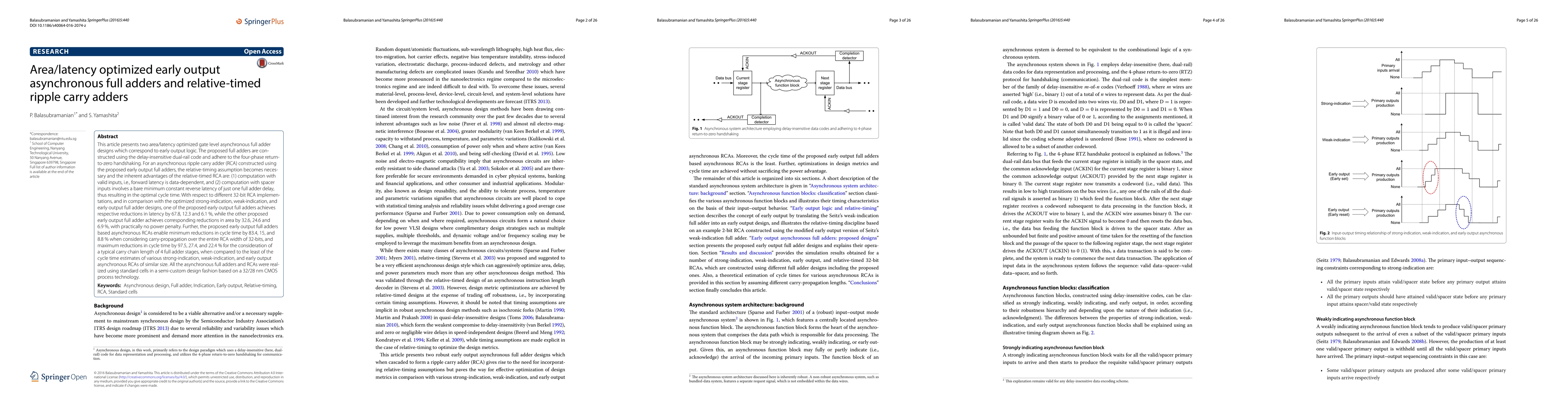 This research presents novel contributions to the field of asynchronous digital systems, including the development of new full adder designs with improved performance and area efficiency