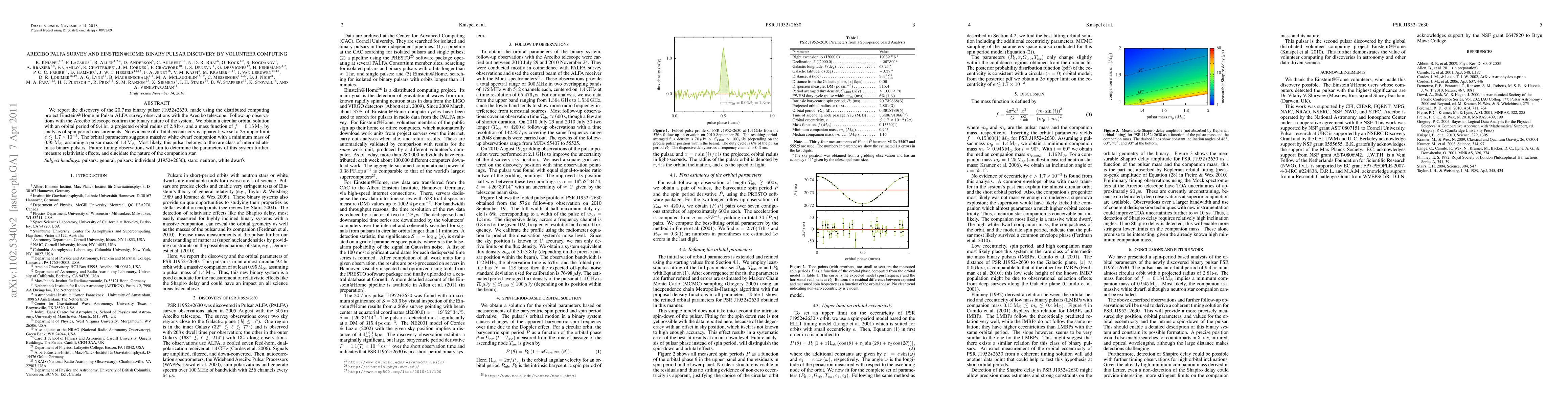 The Arecibo PALFA Survey and Einstein@Home project discovered the 20.7 ms binary pulsar J1952+2630 using volunteer computing, confirmed as a rare intermediate mass binary pulsar with a white dwarf companion. Follow-up observations reveal a circular orbit with an orbital period of 9.4 hours and no significant eccentricity.
