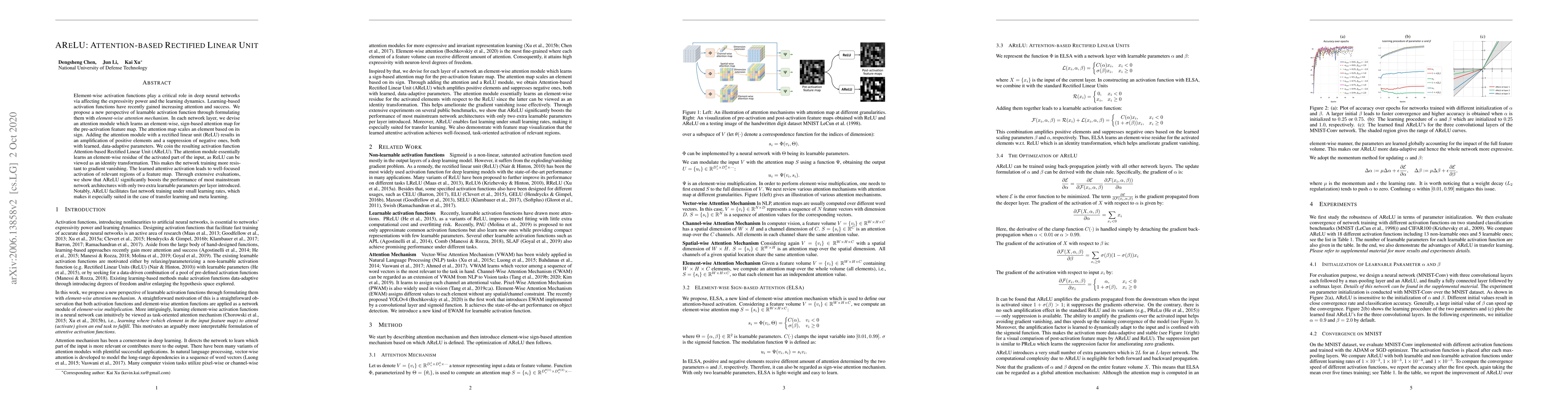 The paper proposes AReLU, an attention-based rectified linear unit that enhances deep neural networks by incorporating an element-wise attention mechanism to adaptively amplify positive and suppress negative elements. This approach improves network training efficiency and performance, especially in transfer learning scenarios.