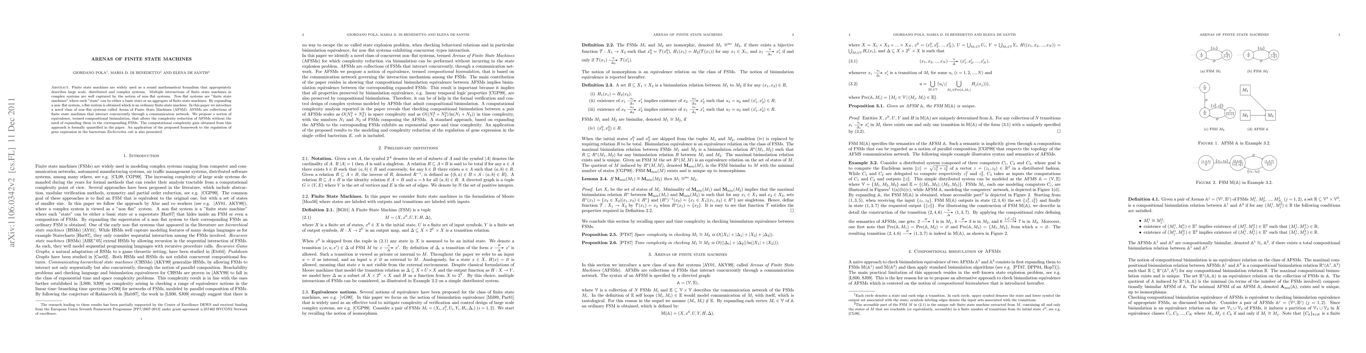 This paper introduces Arena of Finite State Machines (AFSM), a novel class of non-flat systems where finite state machines interact concurrently. It proposes a compositional bisimulation method for checking equivalence, reducing computational complexity without expanding AFSMs, and demonstrates its application in modeling gene expression regulation in Escherichia coli.
