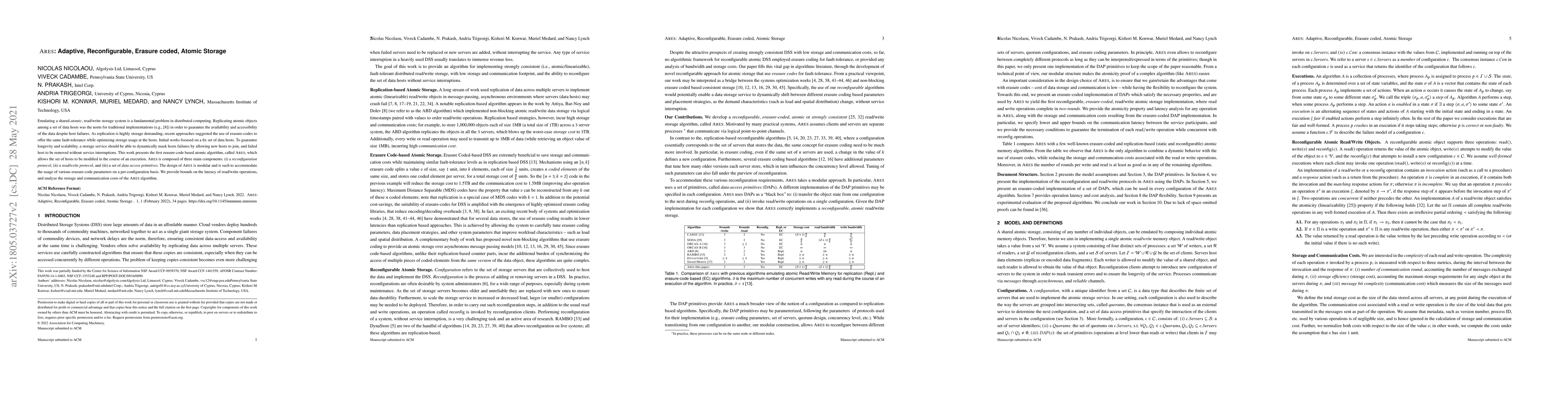Researchers introduce ARES, a framework for adaptive reconfiguration of erasure-coded atomic storage systems, reducing costs while maintaining availability and safety.