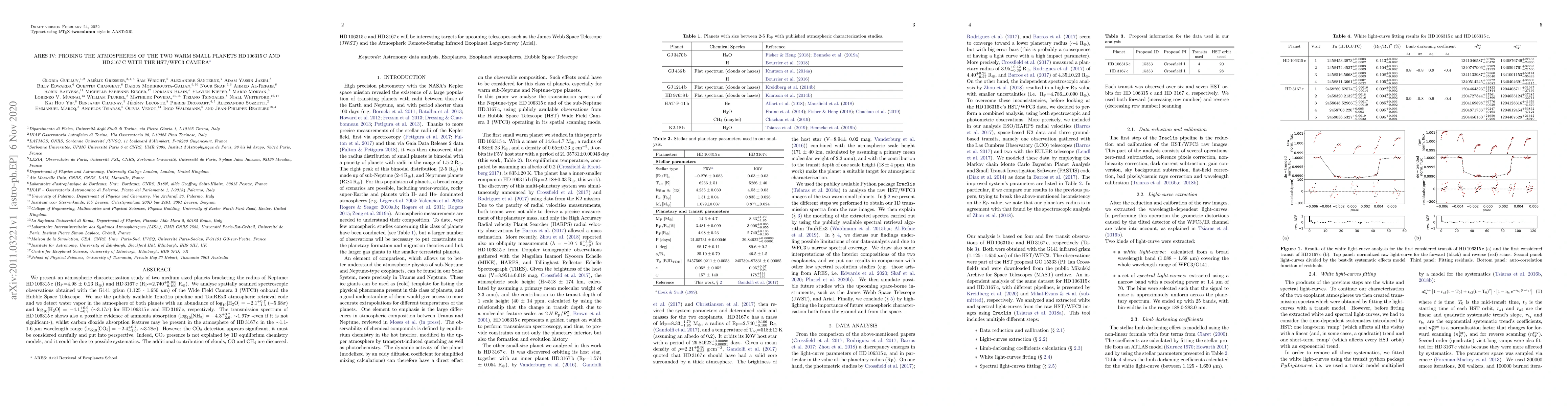 This study characterizes the atmospheres of two Neptune-sized exoplanets, HD 106315 c and HD 3167 c, using HST/WFC3 data. It detects water vapor in both planets and suggests possible ammonia and carbon dioxide in their atmospheres, with HD 3167 c's CO$_2$ detection needing further validation.