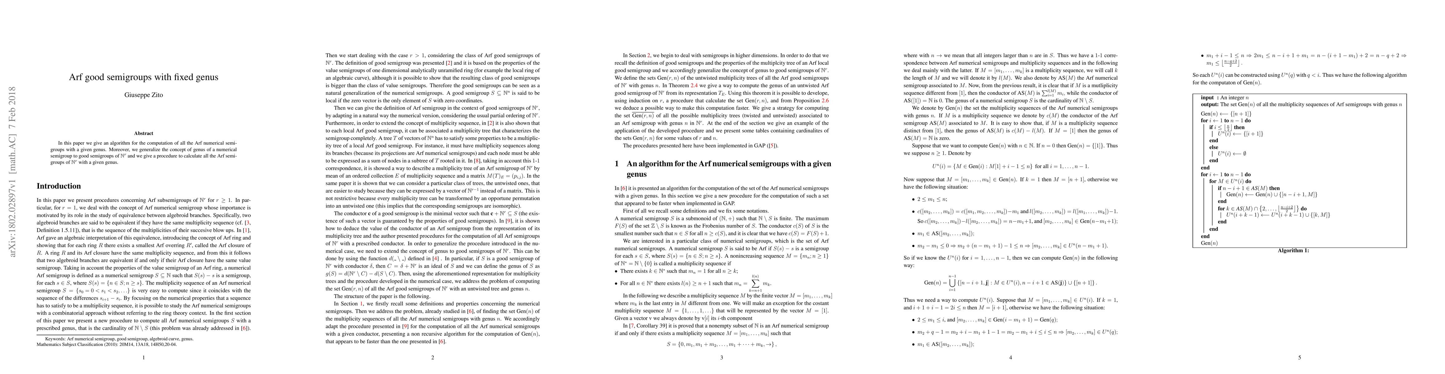 This paper presents an algorithm to compute all Arf numerical semigroups with a specified genus and generalizes the genus concept to good semigroups in $\mathbb{N}^r$, providing a procedure for calculating Arf semigroups of $\mathbb{N}^r$ with a given genus.