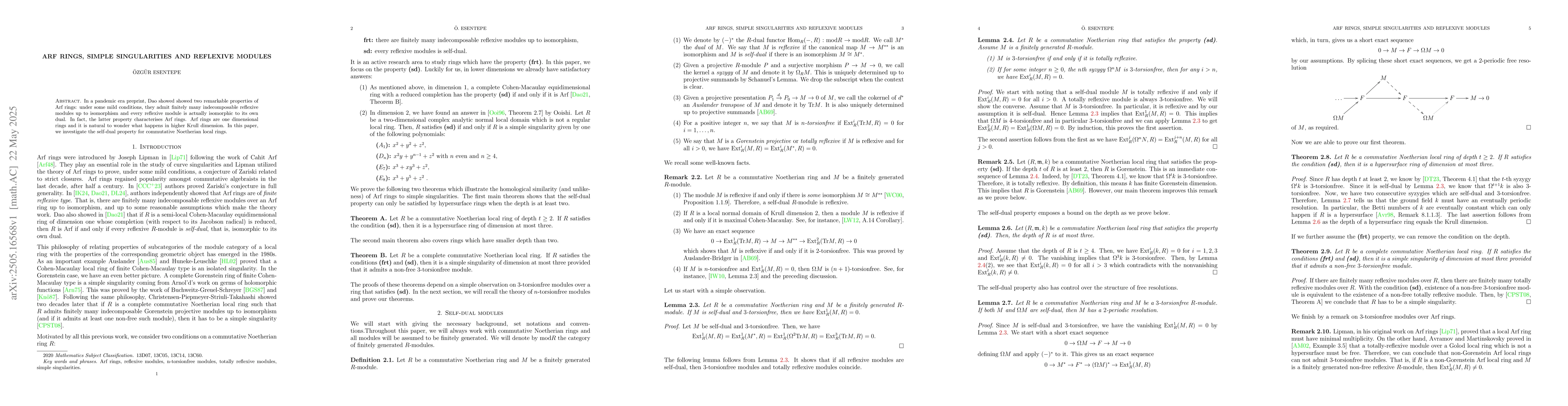 The paper extends the properties of Arf rings to a more general class of commutative Noetherian local rings, identifying conditions under which reflexive modules are self-dual.