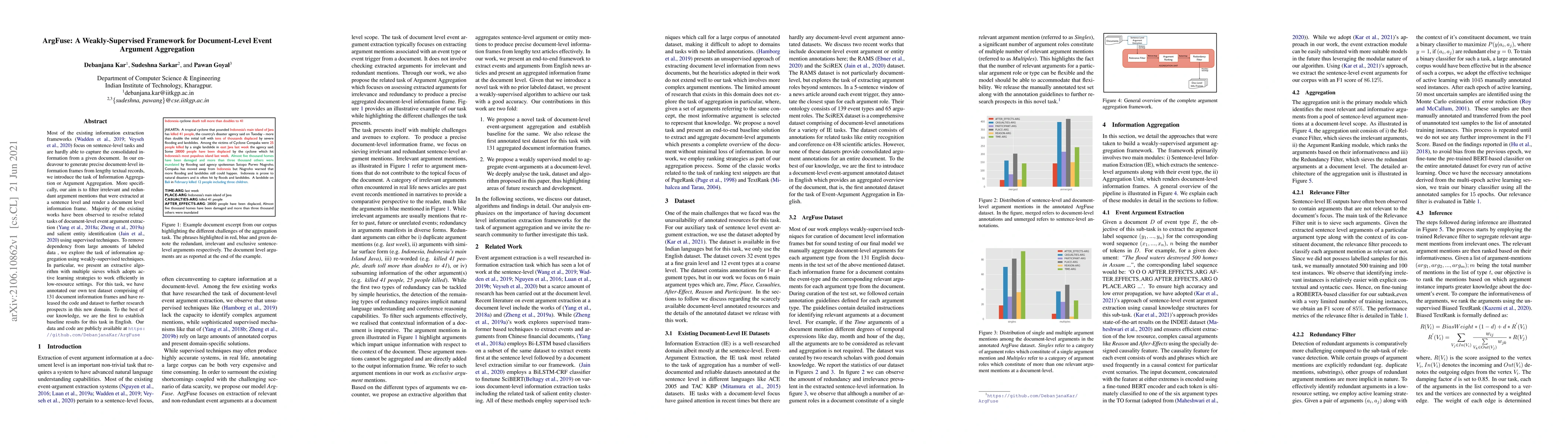 ArgFuse proposes a weakly-supervised framework to filter irrelevant arguments from documents and generate precise information frames. It establishes baseline results for the document-level event argument aggregation task in English.