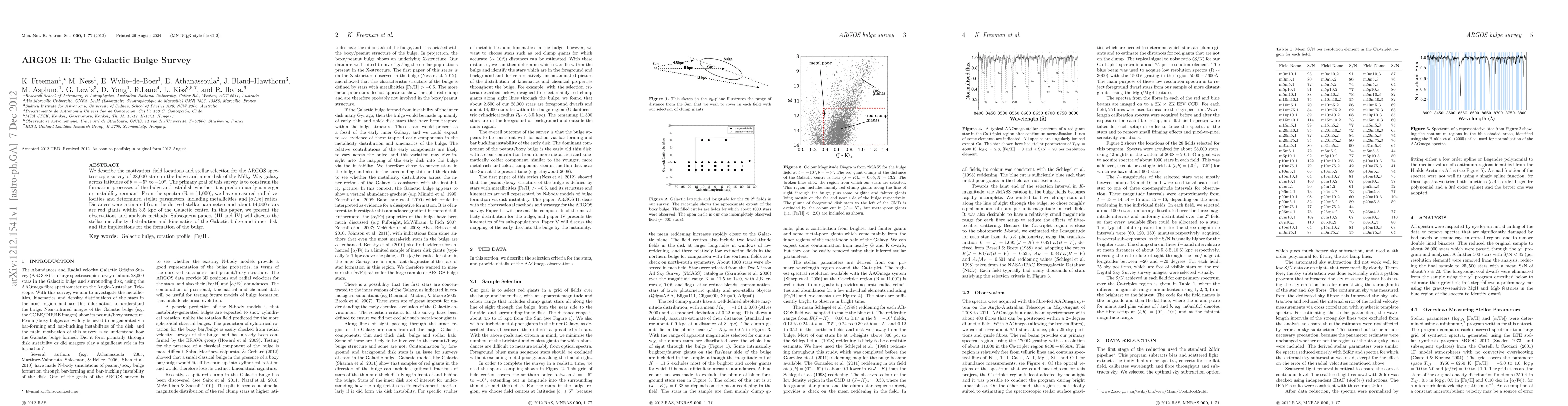 The ARGOS II survey aims to study 28,000 stars in the Milky Way's bulge and inner disk to understand its formation, using spectroscopic data to measure radial velocities and stellar parameters. Subsequent papers will explore the metallicity distribution and kinematics to infer the bulge's formation history.