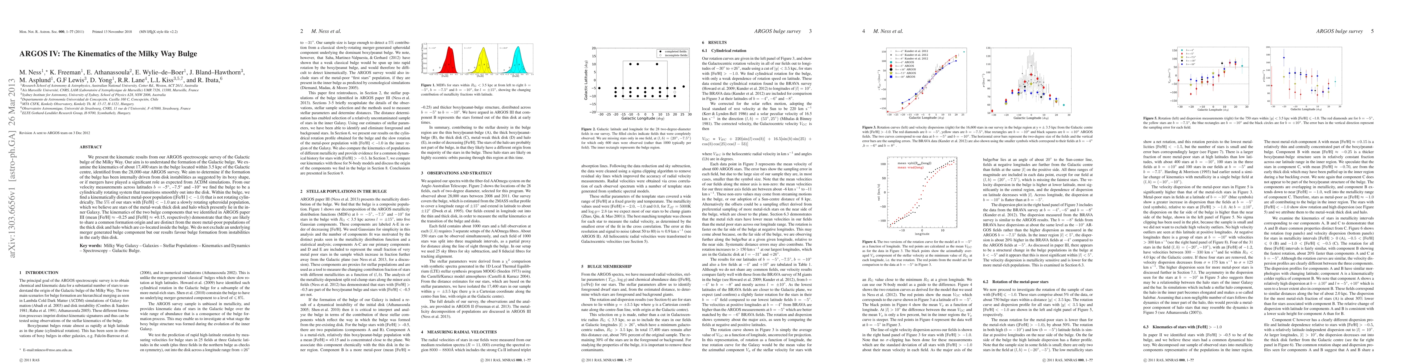 The ARGOS IV survey reveals that the Milky Way bulge exhibits cylindrical rotation, suggesting formation through disk instabilities rather than significant mergers. A distinct, slowly rotating metal-poor population indicates the presence of stars from the metal weak thick disk and halo within the bulge.