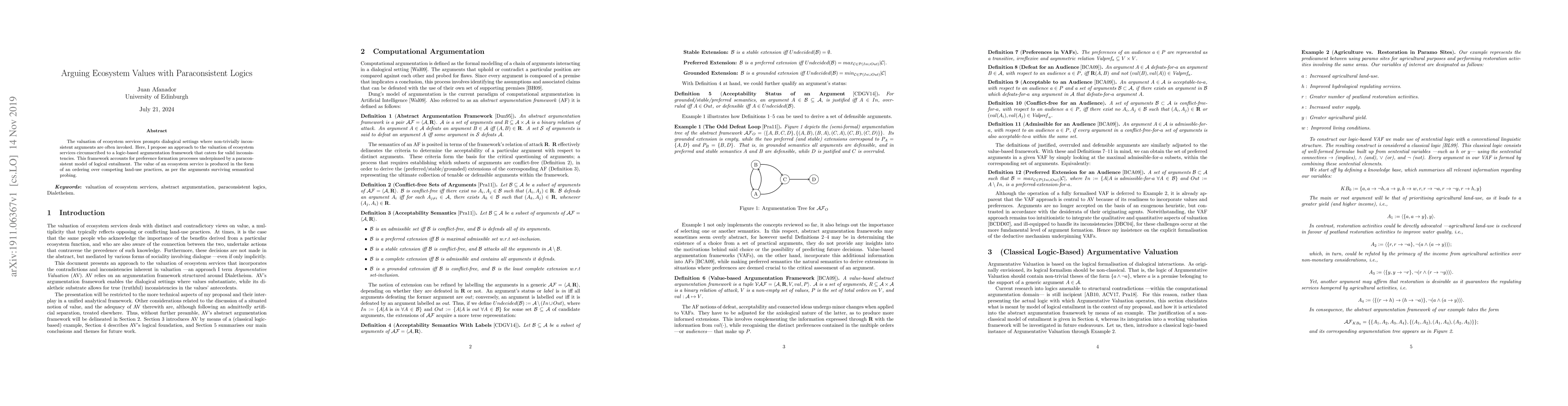 This paper proposes a logic-based argumentation framework using paraconsistent logics to value ecosystem services, acknowledging non-trivially inconsistent arguments. The value of an ecosystem service is determined by an ordering of competing land-use practices, based on arguments surviving semantical probing.