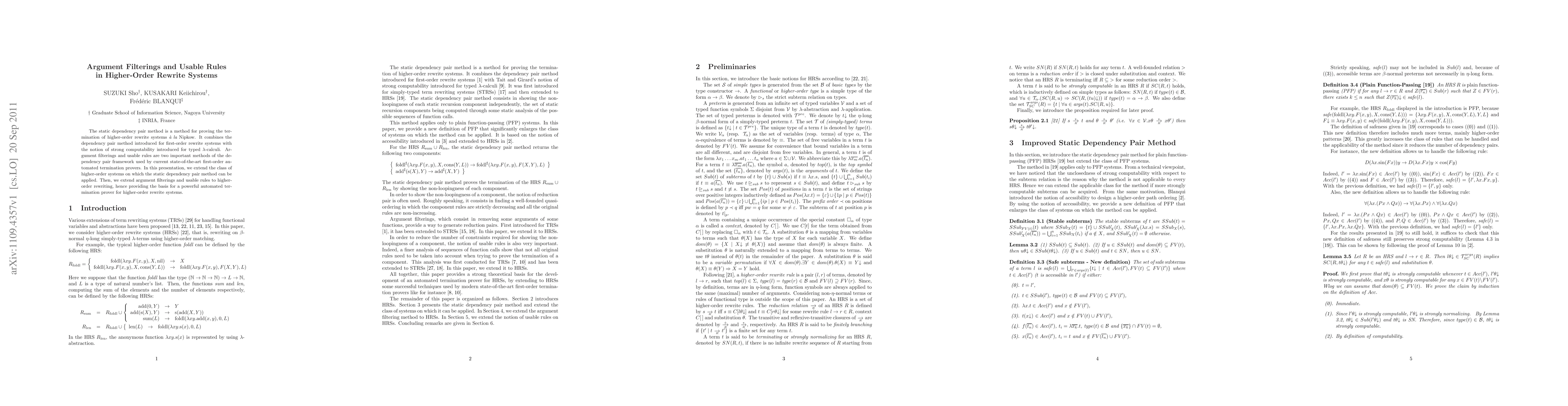 This paper extends the static dependency pair method to higher-order rewrite systems, incorporating the concepts of argument filterings and usable rules to facilitate automated termination proving for these systems. The goal is to provide a robust framework for terminating higher-order rewrite systems.