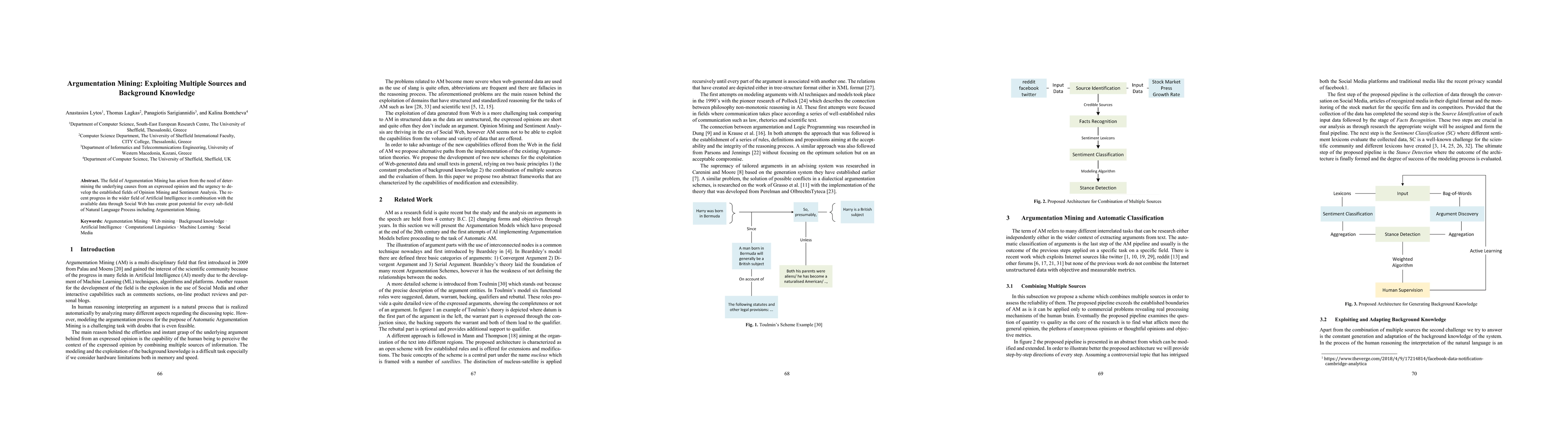 Summary: This paper explores Argumentation Mining, a sub-field of Natural Language Processing that aims to identify underlying reasons behind expressed opinions, leveraging advancements in Artificial Intelligence and data from the Social Web to enhance Opinion Mining and Sentiment Analysis. It emphasizes the potential of exploiting multiple data sources and background knowledge for improved analysis.