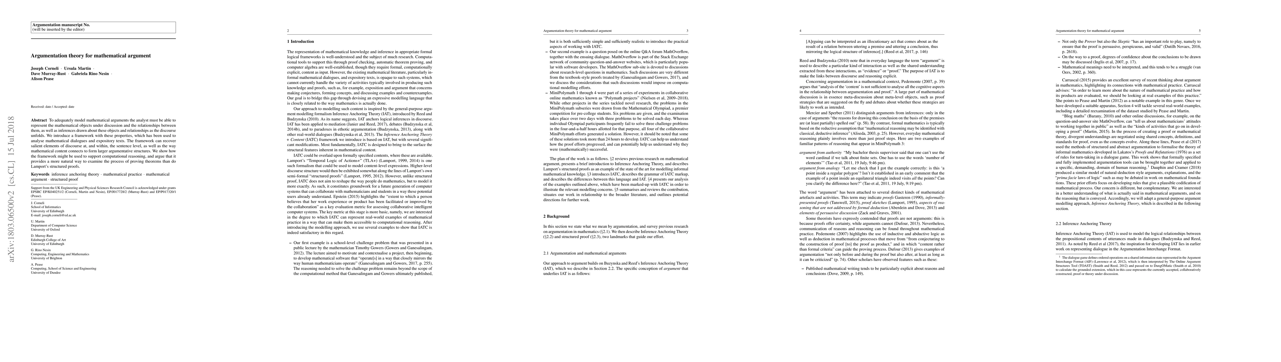 The paper introduces Inference Anchoring Theory+Content (IATC) to model mathematical arguments, comparing it with IAT and showcasing its capabilities through three examples.