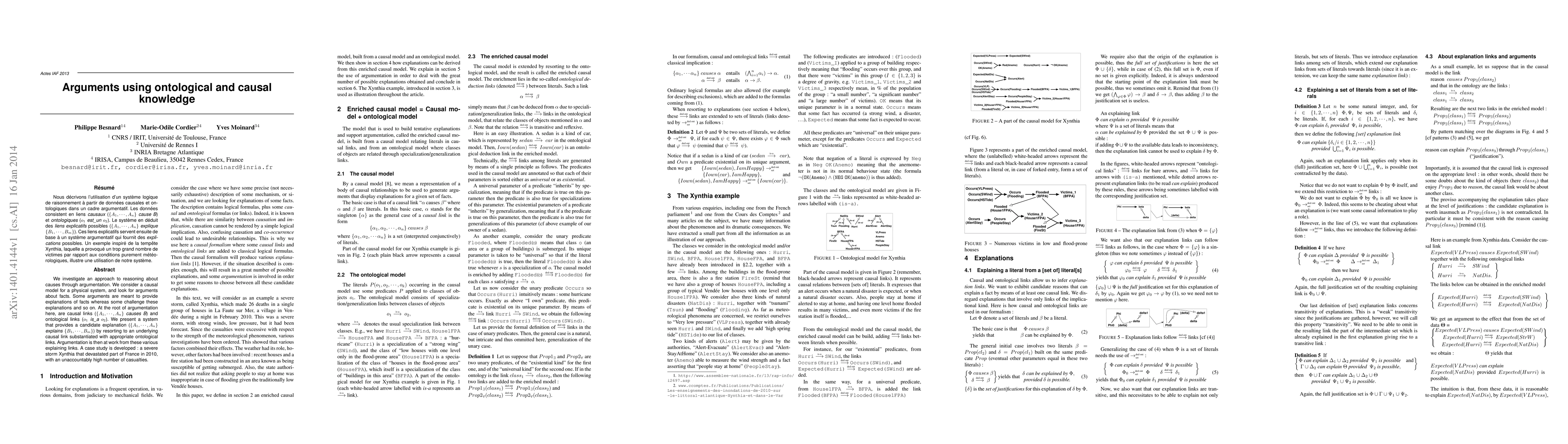 This paper explores a method for reasoning about causal explanations using argumentation, grounded in both causal and ontological knowledge. It presents a system that generates explanations for physical phenomena, illustrated through the case study of the 2010 Xynthia storm in France.