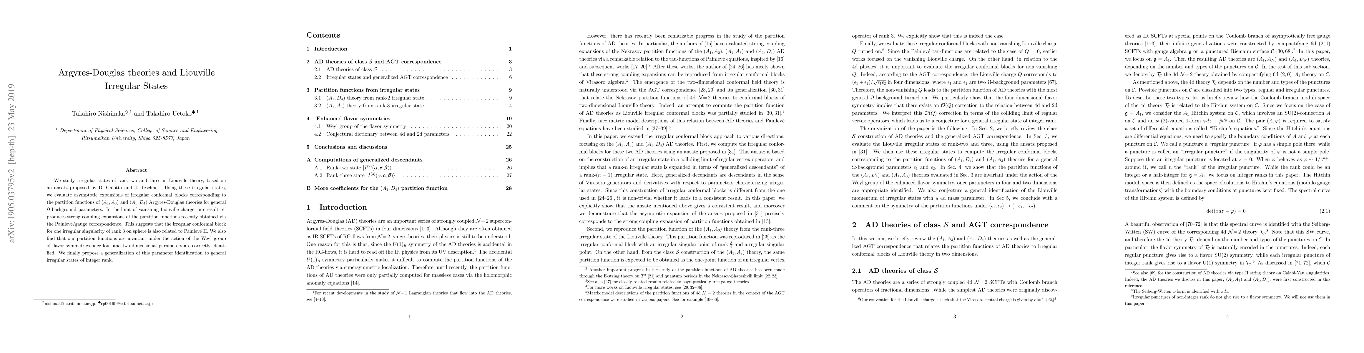 We study irregular states of rank-two and three in Liouville theory, based on an ansatz proposed by D. Gaiotto and J. Teschner. Using these irregular states, we evaluate asymptotic expansions of irregular conformal blocks corresponding to the partition functions of $(A_1,A_3)$ and $(A_1,D_4)$ Argyres-Douglas theories for general $\Omega$-background parameters. In the limit of vanishing Liouville charge, our result reproduces strong coupling expansions of the partition functions recently obtained via the Painlev\'e/gauge correspondence. This suggests that the irregular conformal block for one irregular singularity of rank 3 on sphere is also related to Painlev\'e II. We also find that our partition functions are invariant under the action of the Weyl group of flavor symmetries once four and two-dimensional parameters are correctly identified. We finally propose a generalization of this parameter identification to general irregular states of integer rank.