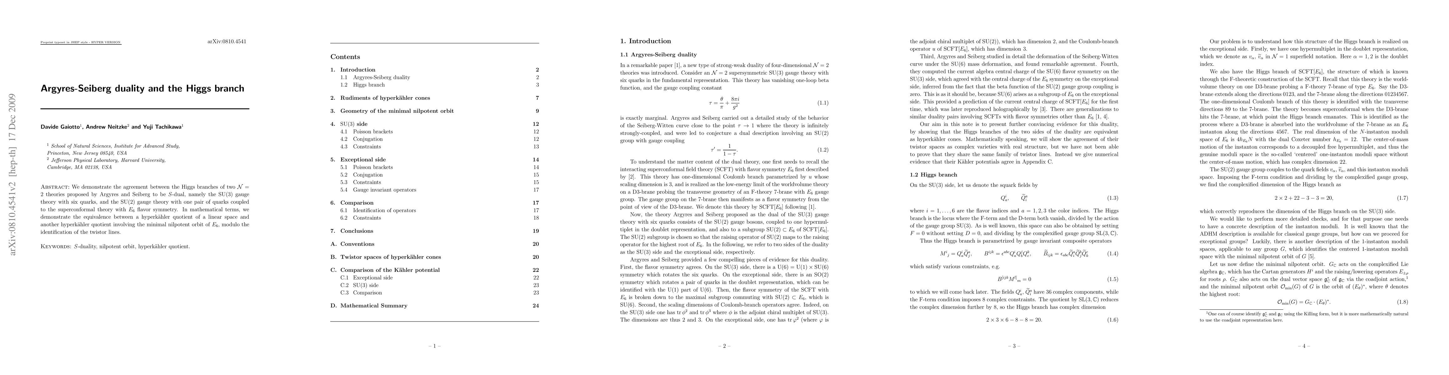 We demonstrate the agreement between the Higgs branches of two N=2 theories proposed by Argyres and Seiberg to be S-dual, namely the SU(3) gauge theory with six quarks, and the SU(2) gauge theory with one pair of quarks coupled to the superconformal theory with E_6 flavor symmetry. In mathematical terms, we demonstrate the equivalence between a hyperkaehler quotient of a linear space and another hyperkaehler quotient involving the minimal nilpotent orbit of E_6, modulo the identification of the twistor lines.