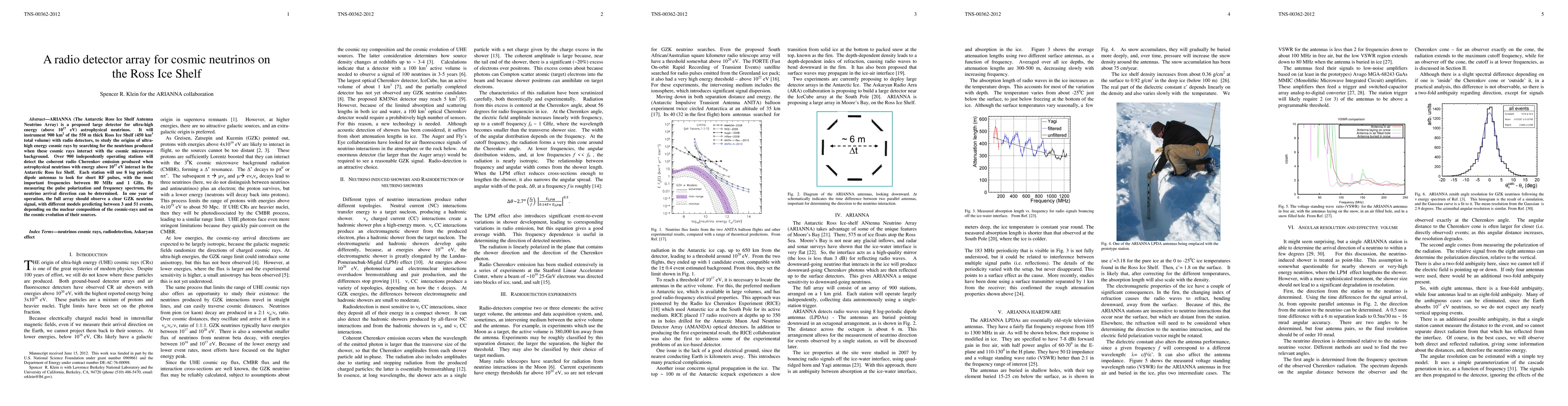 ARIANNA (The Antarctic Ross Ice Shelf Antenna Neutrino Array) is a proposed 100 km^3 detector for ultra-high energy (above 10^17 eV) astrophysical neutrinos. It will study the origins of ultra-high energy cosmic rays by searching for the neutrinos produced when these cosmic rays interact with the cosmic microwave background. Over 900 independently operating stations will detect the coherent radio Cherenkov emission produced when astrophysical neutrinos with energy above 10^17 eV interact in the Antarctic Ross Ice Shelf. Each station will use 8 log periodic dipole antennas to look for short RF pulses, with the most important frequencies between 80 MHz and 1 GHz. By measuring the pulse polarization and frequency spectrum, the neutrino arrival direction can be determined. In one year of operation, the full array should observe a clear GZK neutrino signal, with different models predicting between 3 and 51 events, depending on the nuclear composition of the cosmic-rays and on the cosmic evolution of their sources.