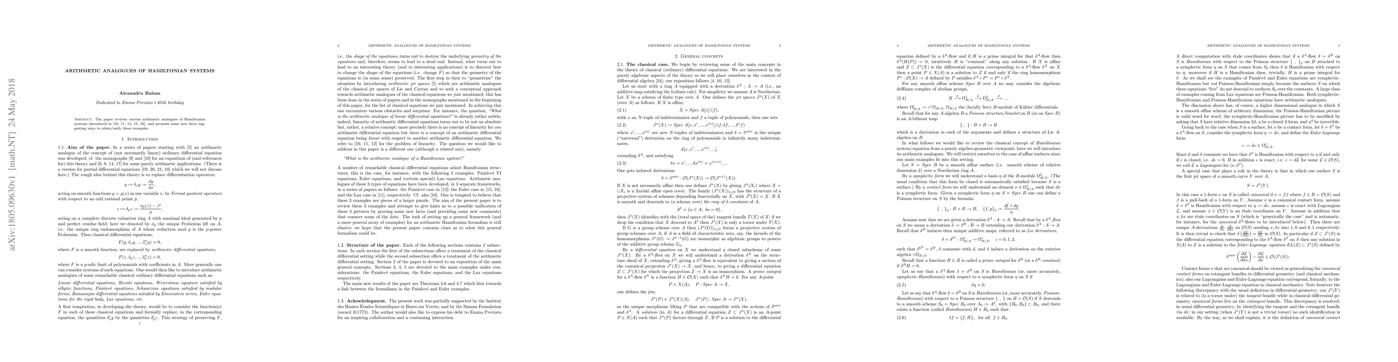 The paper reviews various arithmetic analogues of Hamiltonian systems and presents some new facts suggesting ways to relate/unify these examples.