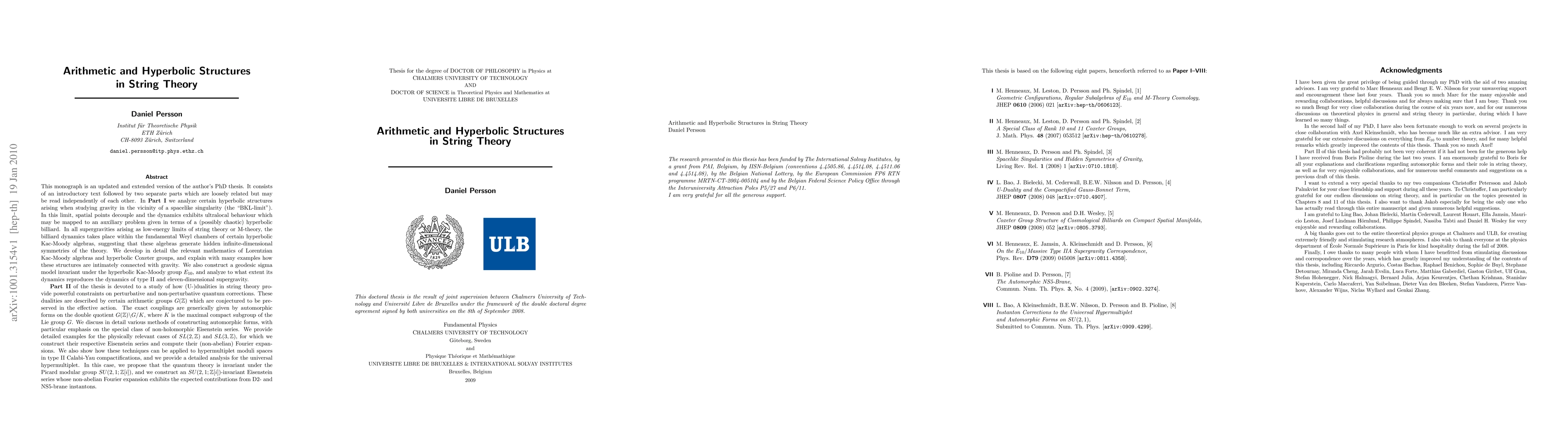 This monograph is an updated and extended version of the author's PhD thesis. It consists of an introductory text followed by two separate parts which are loosely related but may be read independently of each other. In Part I we analyze certain hyperbolic structures arising when studying gravity in the vicinity of a spacelike singularity (the "BKL-limit"). In this limit, spatial points decouple and the dynamics exhibits ultralocal behaviour which may be described in terms of a (possibly chaotic) hyperbolic billiard. In all supergravities arising as low-energy limits of string theory or M-theory, the billiard dynamics takes place within the fundamental Weyl chambers of certain hyperbolic Kac-Moody algebras, suggesting that these algebras generate hidden infinite-dimensional symmetries of the theory. Part II of the thesis is devoted to a study of how (U-)dualities in string theory provide powerful constraints on perturbative and non-perturbative quantum corrections. These dualities are described by certain arithmetic groups G(Z) which are conjectured to be preserved in the effective action. The exact couplings are given by automorphic forms on the double quotient G(Z)\G/K. We discuss in detail various methods of constructing automorphic forms, with particular emphasis on non-holomorphic Eisenstein series. We provide detailed examples for the physically relevant cases of SL(2,Z) and SL(3,Z), for which we construct their respective Eisenstein series and compute their (non-abelian) Fourier expansions. We also show how these techniques can be applied to hypermultiplet moduli spaces in type II Calabi-Yau compactifications, and we provide a detailed analysis for the universal hypermultiplet.