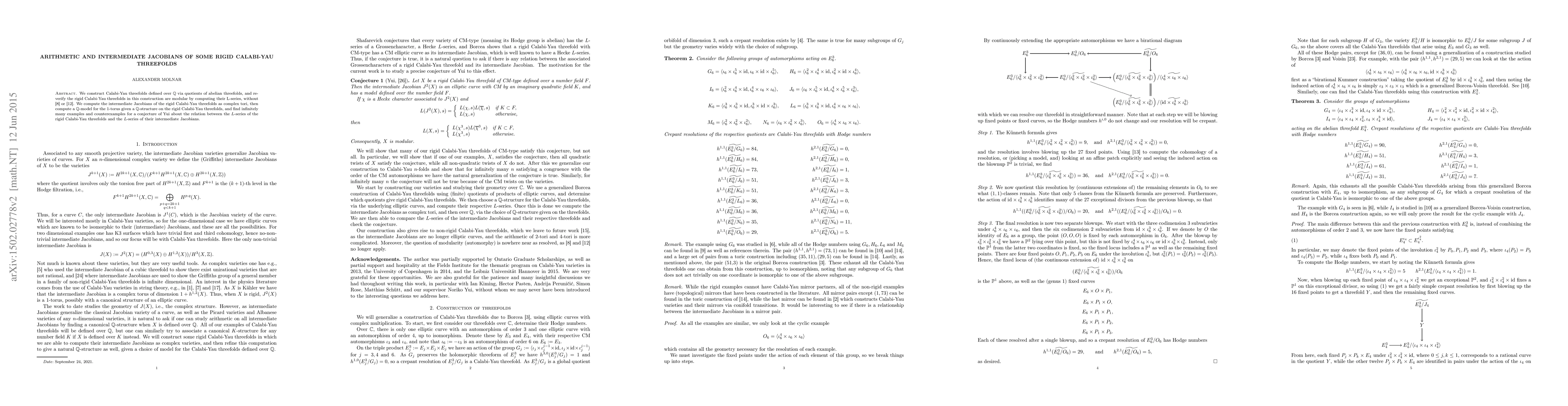 We construct Calabi-Yau threefolds defined over $\mathbb{Q}$ via quotients of abelian threefolds, and re-verify the rigid Calabi-Yau threefolds in this construction are modular by computing their L-series, without \cite{Dieulefait} or \cite{GouveaYui}. We compute the intermediate Jacobians of the rigid Calabi-Yau threefolds as complex tori, then compute a $\mathbb{Q}$-model for the 1-torus given a $\mathbb{Q}$-structure on the rigid Calabi-Yau threefolds, and find infinitely many examples and counterexamples for a conjecture of Yui about the relation between the $L$-series of the rigid Calabi-Yau threefolds and the $L$-series of their intermediate Jacobians.