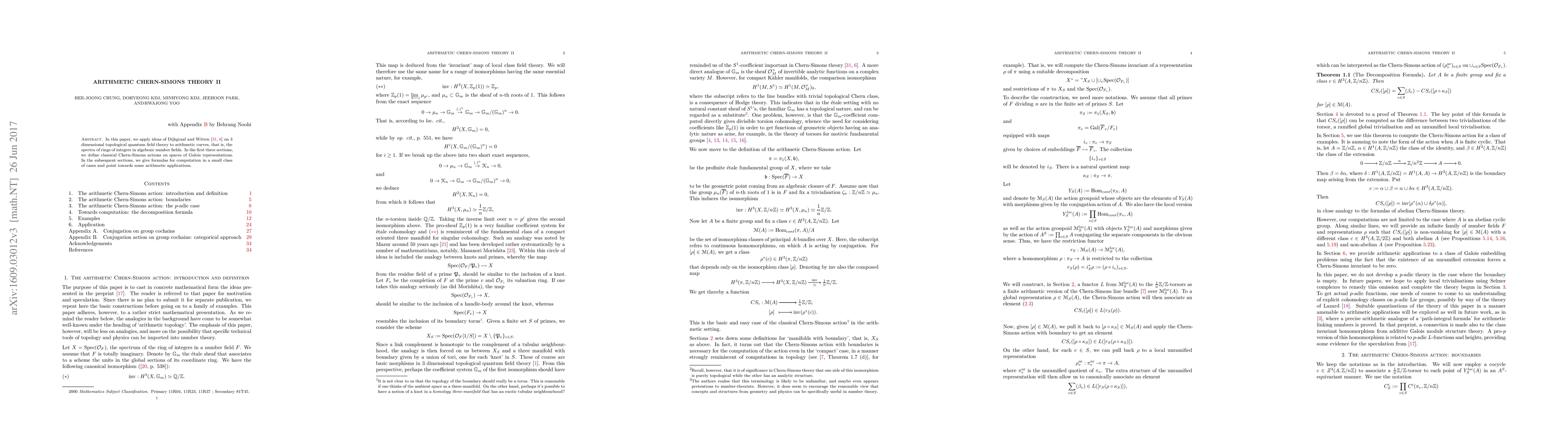 This paper extends Dijkgraaf and Witten's three-dimensional topological quantum field theory concepts to arithmetic curves, specifically the spectra of integer rings in algebraic number fields. It defines classical Chern-Simons actions on Galois representation spaces and provides computational formulas for specific cases, hinting at potential arithmetic applications.