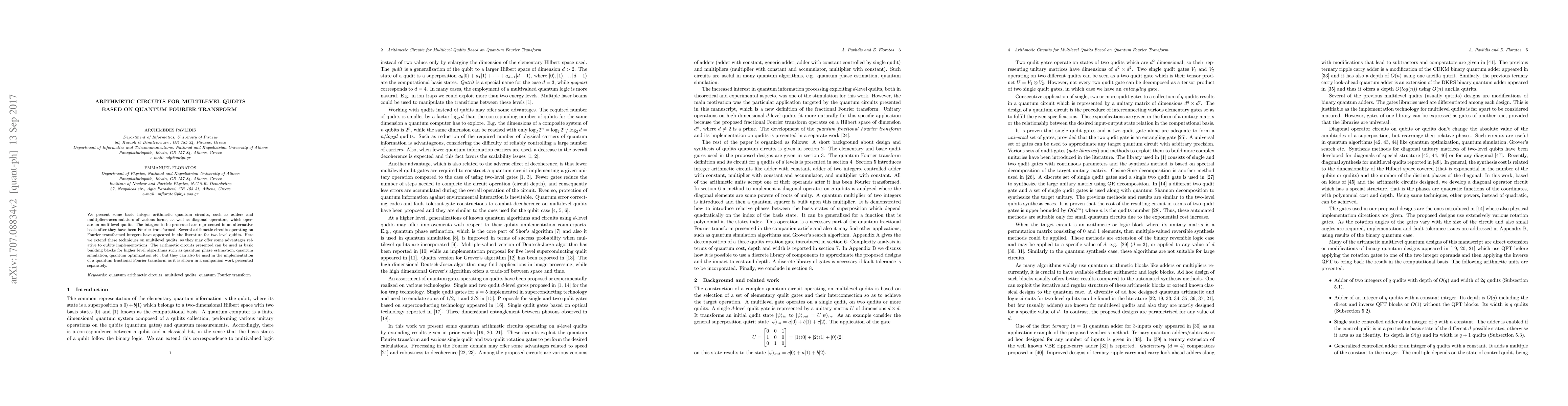 We present some basic integer arithmetic quantum circuits, such as adders and multipliers-accumulators of various forms, as well as diagonal operators, which operate on multilevel qudits. The integers to be processed are represented in an alternative basis after they have been Fourier transformed. Several arithmetic circuits operating on Fourier transformed integers have appeared in the literature for two level qubits. Here we extend these techniques on multilevel qudits, as they may offer some advantages relative to qubits implementations. The arithmetic circuits presented can be used as basic building blocks for higher level algorithms such as quantum phase estimation, quantum simulation, quantum optimization etc., but they can also be used in the implementation of a quantum fractional Fourier transform as it is shown in a companion work presented separately.