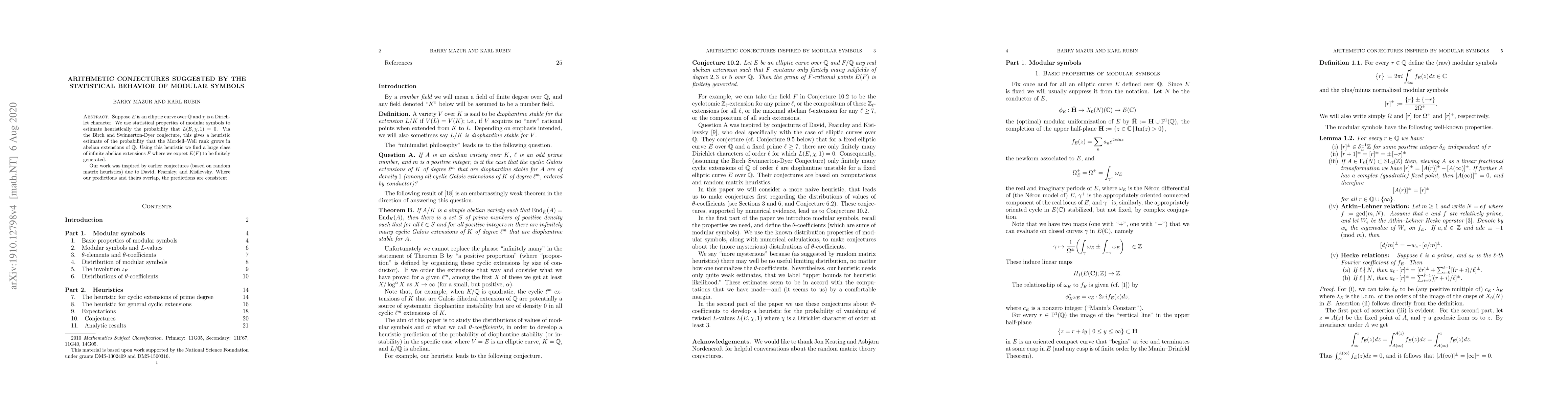 Suppose $E$ is an elliptic curve over $\mathbb{Q}$ and $\chi$ is a Dirichlet character. We use statistical properties of modular symbols to estimate heuristically the probability that $L(E,\chi,1) = 0$. Via the Birch and Swinnerton-Dyer conjecture, this gives a heuristic estimate of the probability that the Mordell-Weil rank grows in abelian extensions of $\mathbb{Q}$. Using this heuristic we find a large class of infinite abelian extensions $F$ where we expect $E(F)$ to be finitely generated. Our work was inspired by earlier conjectures (based on random matrix heuristics) due to David, Fearnley, and Kisilevsky. Where our predictions and theirs overlap, the predictions are consistent.