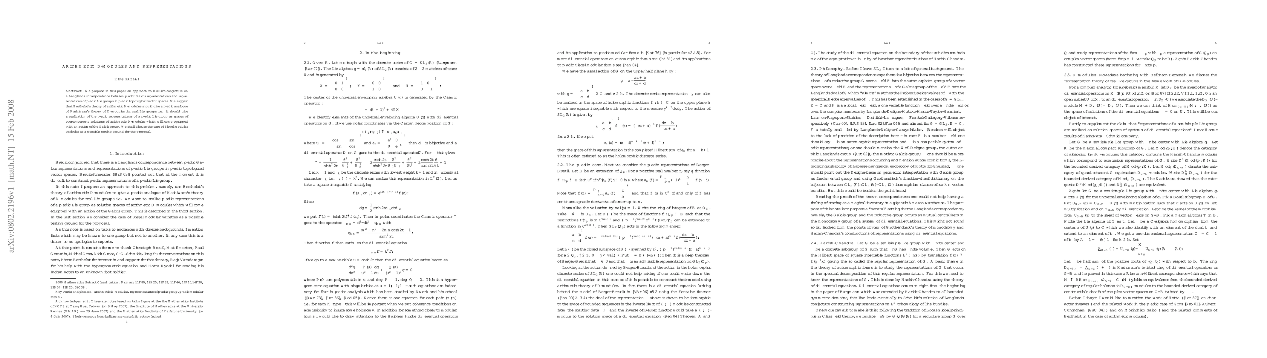 We propose in this paper an approach to Breuil's conjecture on a Langlands correspondence between $p$-adic Galois representations and representations of $p$-adic Lie groups in $p$-adic topological vector spaces. We suggest that Berthelot's theory of arithmetic $D$-modules should give a $p$-adic analogue of Kashiwara's theory of $D$-modules for real Lie groups i.e. it should give a realization of the $p$-adic representations of a $p$-adic Lie group as spaces of overconvergent solutions of arithmetic $D$-modules which will come equipped with an action of the Galois group. We shall discuss the case of Siegel modular varieties as a possible testing ground for the proposal.