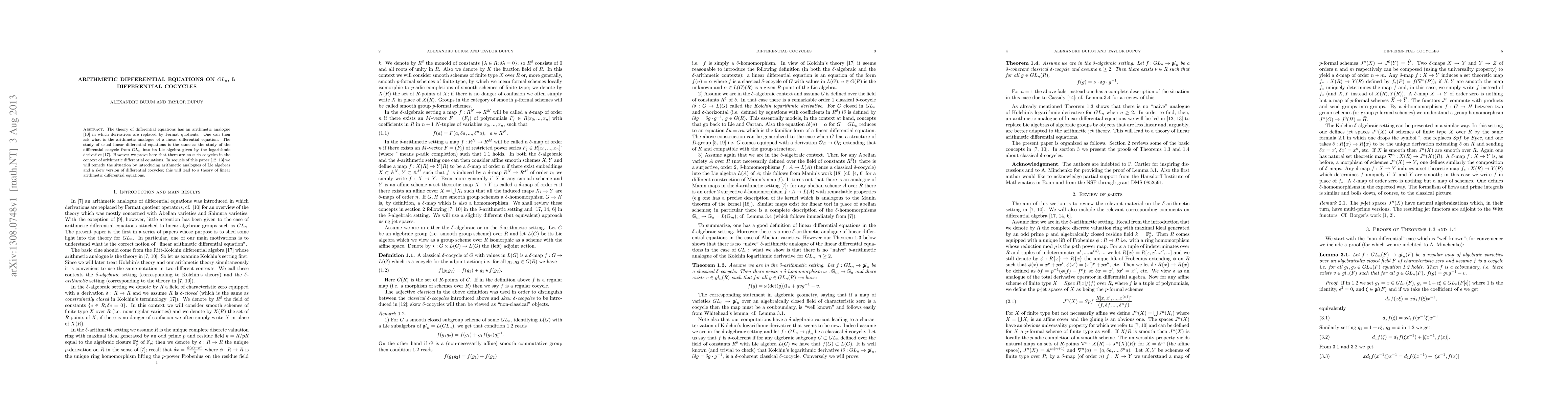This paper explores the arithmetic analogue of linear differential equations using Fermat quotients instead of derivatives. It proves that there are no arithmetic analogues of differential cocycles from $GL_n$ into its Lie algebra, hinting at the need for new approaches in arithmetic differential equations.