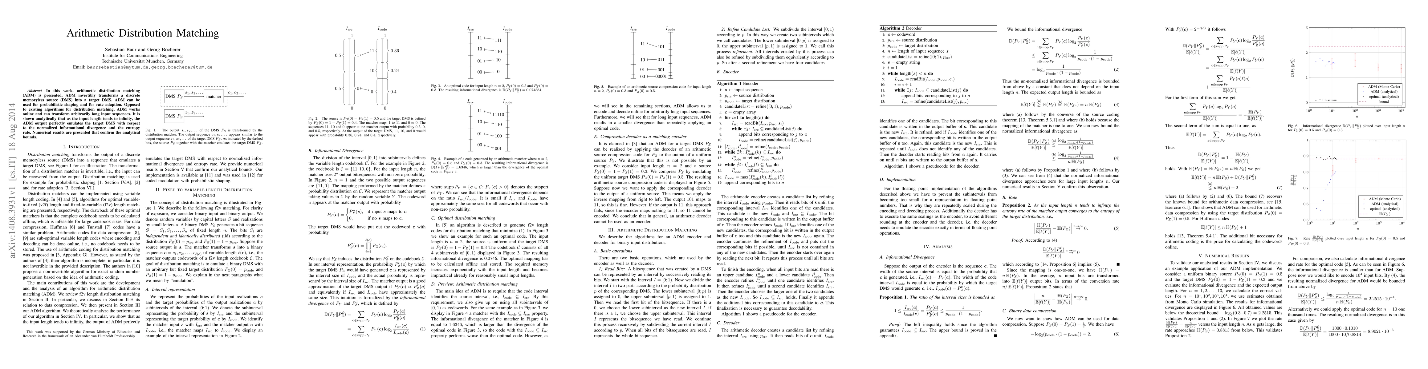 A new algorithm called Arithmetic Distribution Matching (ADM) is proposed to transform a discrete memoryless source into another target source, allowing for online probabilistic shaping and rate adaptation. ADM perfectly emulates the target source with respect to normalized informational divergence and entropy rate as input length tends to infinity.