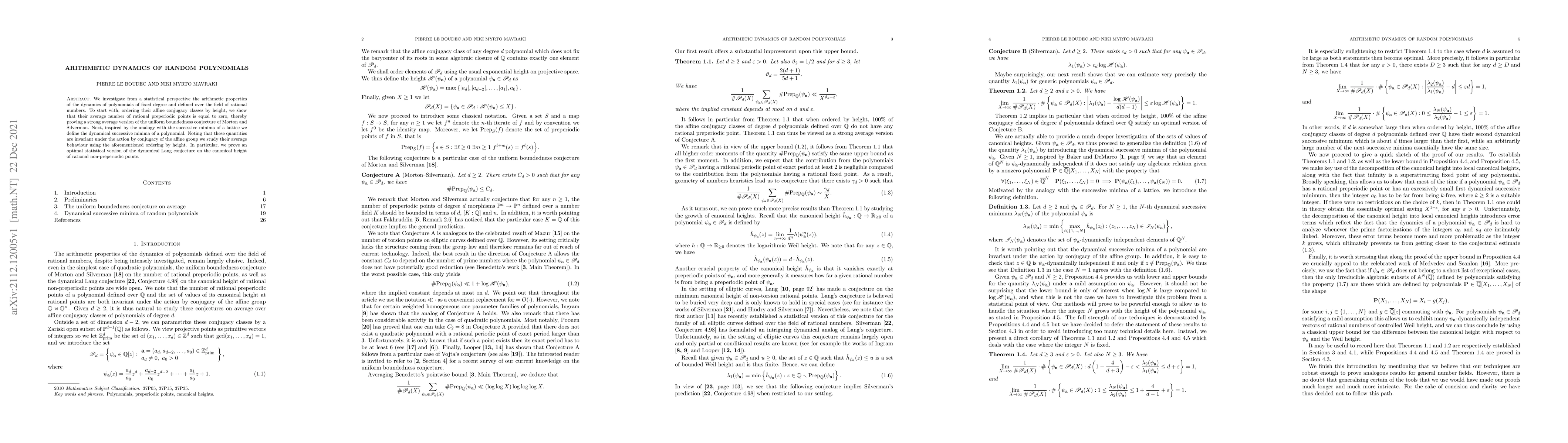 We investigate from a statistical perspective the arithmetic properties of the dynamics of polynomials of fixed degree and defined over the field of rational numbers. To start with, ordering their affine conjugacy classes by height, we show that their average number of rational preperiodic points is equal to zero, thereby proving a strong average version of the uniform boundedness conjecture of Morton and Silverman. Next, inspired by the analogy with the successive minima of a lattice we define the dynamical successive minima of a polynomial. Noting that these quantities are invariant under the action by conjugacy of the affine group we study their average behaviour using the aforementioned ordering by height. In particular, we prove an optimal statistical version of the dynamical Lang conjecture on the canonical height of rational non-preperiodic points.