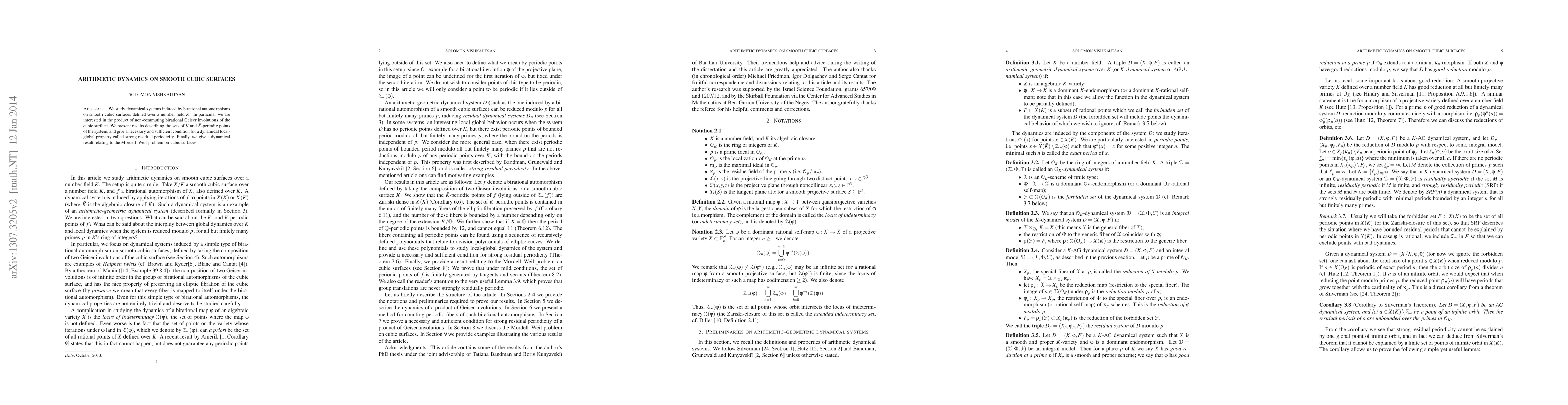 This paper investigates dynamical systems on smooth cubic surfaces via birational automorphisms, focusing on the interaction of non-commuting birational Geiser involutions. It presents results on periodic points and establishes a condition for strong residual periodicity, alongside a dynamical insight into the Mordell-Weil theorem on cubic surfaces.