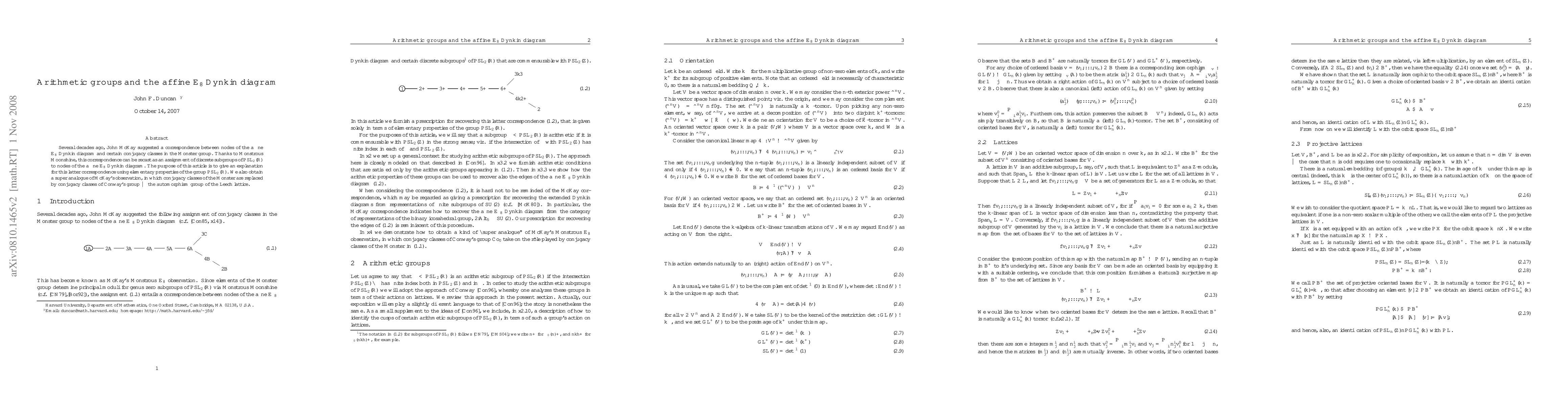 This paper explores the correspondence between the nodes of the affine E8 Dynkin diagram and discrete subgroups of PSL2, explaining it through basic properties of PSL2. It also extends McKay's observation to include Conway's group, replacing the Monster group with the automorphism group of the Leech lattice.