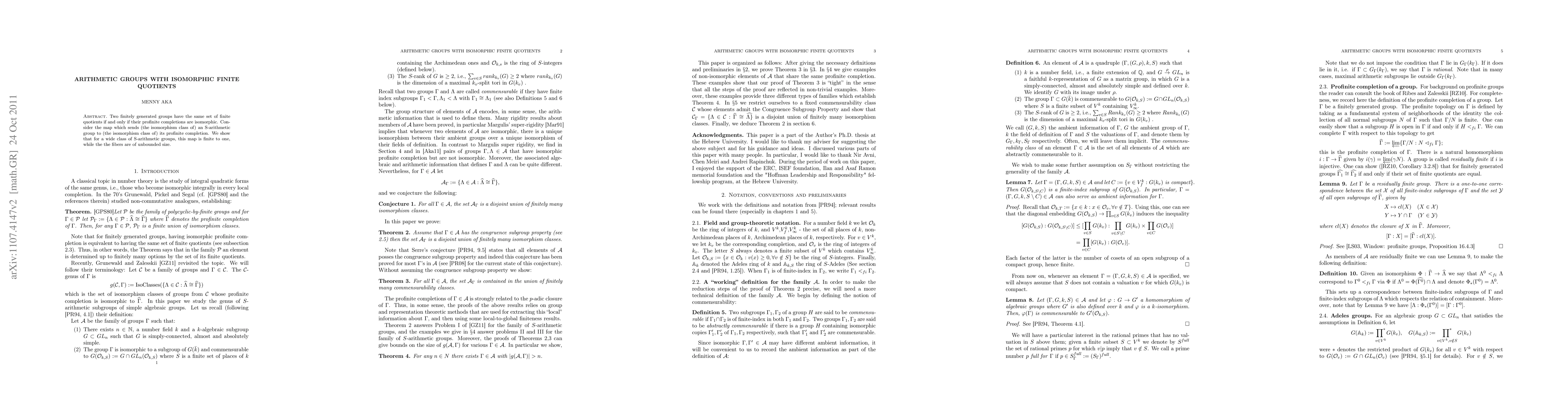 This paper demonstrates that two finitely generated groups share the same set of finite quotients if and only if their profinite completions are isomorphic. It further shows that for many S-arithmetic groups, the mapping from their isomorphism class to their profinite completion is one-to-one, yet fibers can have unbounded sizes.