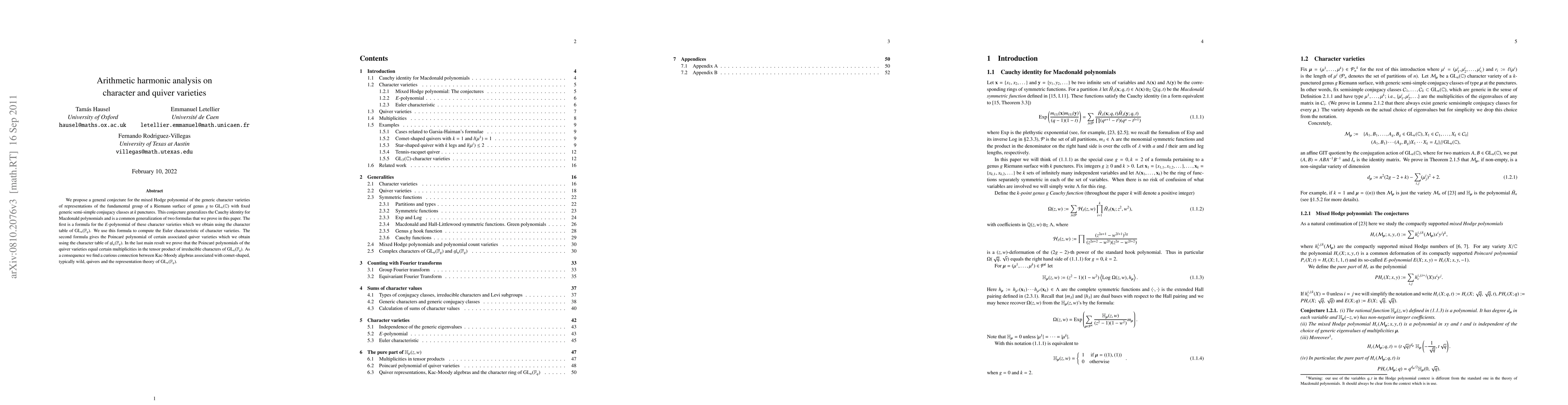 This paper proposes a conjecture generalizing the Cauchy formula for Macdonald polynomials, relating mixed Hodge polynomials of character varieties of GL_n(C) to E-polynomials and connections to representations of GL_n(F_q) and Kac-Moody algebras. Empirical calculations confirm the conjecture's predictions for both character and comet-shaped quiver varieties.