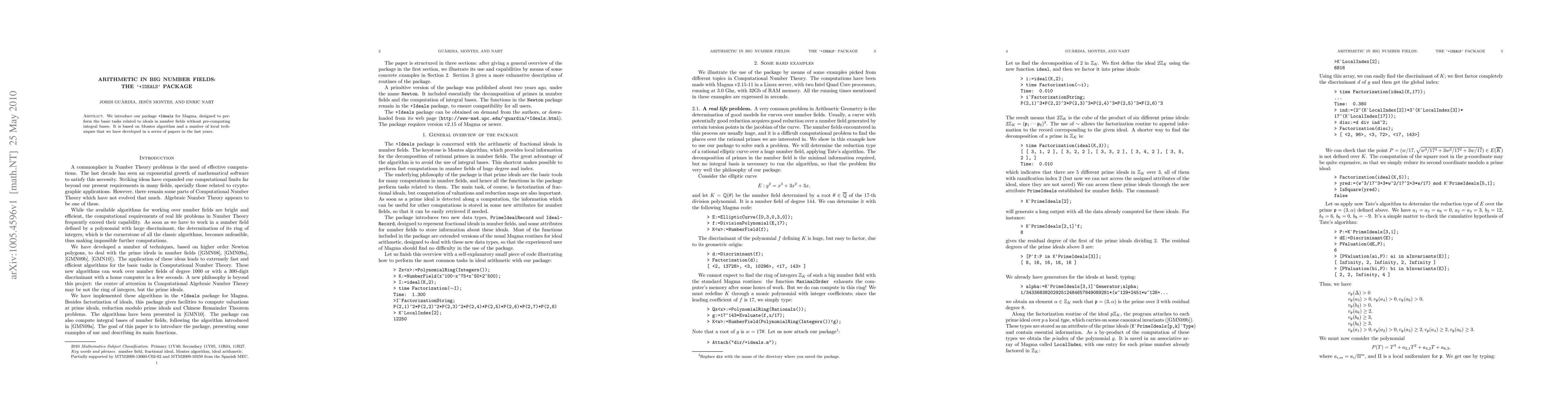 A new package called '+Ideals' is introduced for performing basic tasks related to ideals in number fields without pre-computing integral bases. It utilizes Montes algorithm and local techniques to achieve this goal.