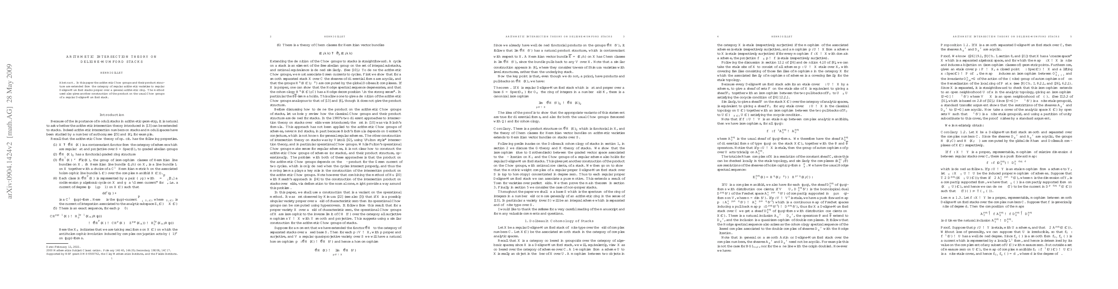 Summary: This paper extends arithmetic Chow groups and their multiplicative structure from regular arithmetic varieties to regular Deligne-Mumford stacks over the integer ring of a number field, advancing the framework for intersection theory in algebraic geometry.