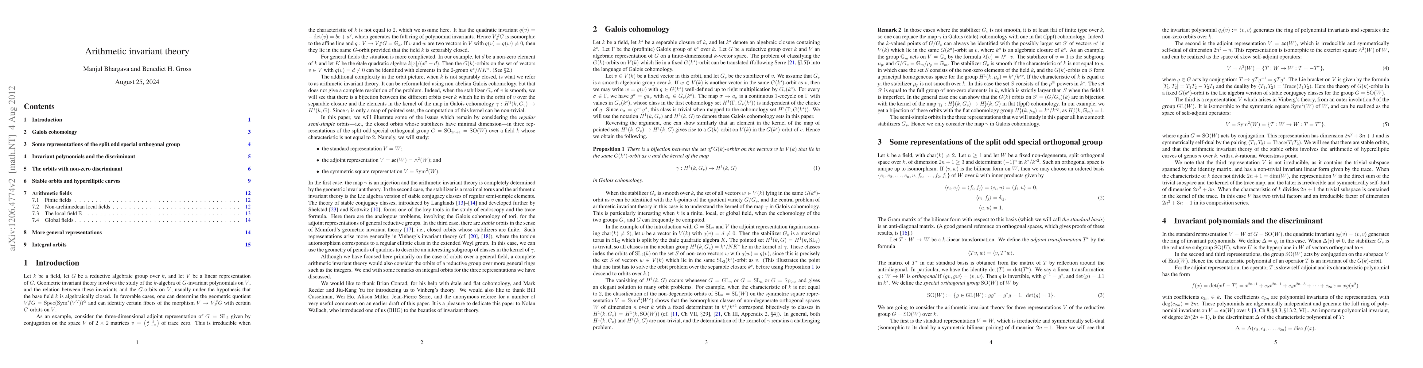 The paper employs arithmetic invariant theory to study the problem of $G$-invariant polynomials on a linear representation $V$ of a reductive algebraic group $G$ over a field $k$, extending geometric invariant theory to non-algebraically closed fields.