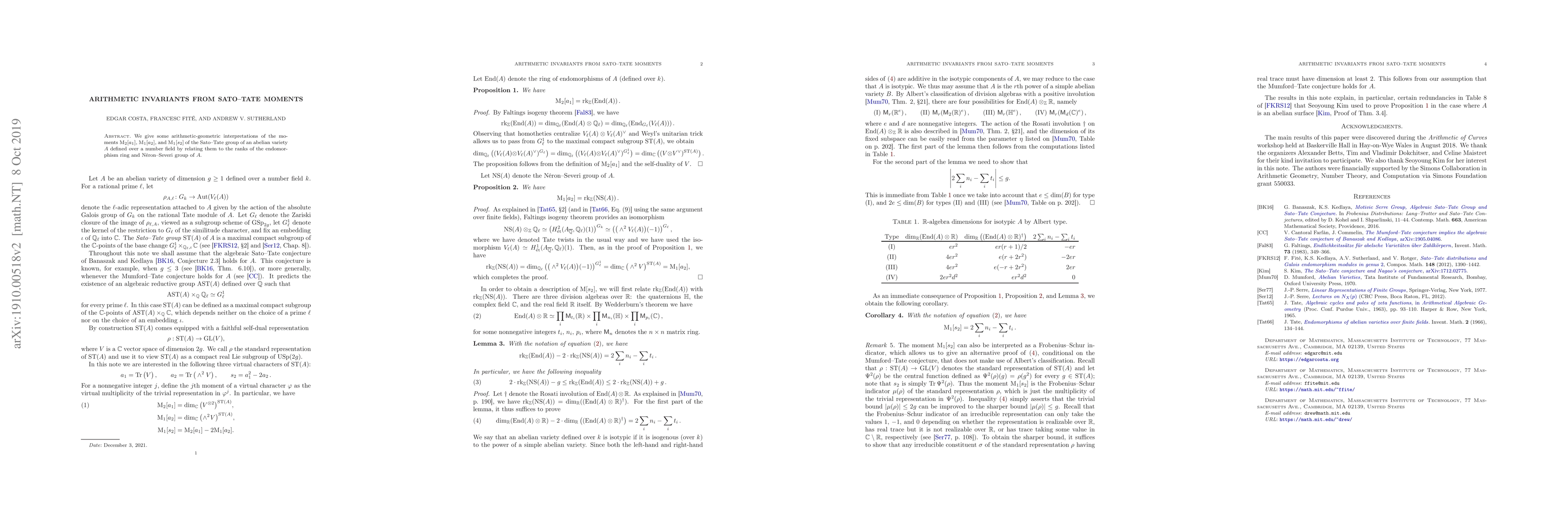 This paper interprets arithmetic-geometric meanings of Sato-Tate moments M_2[a_1], M_1[a_2], and M_1[s_2] for an abelian variety A over a number field, linking these moments to the ranks of A's endomorphism ring and Néron-Severi group.
