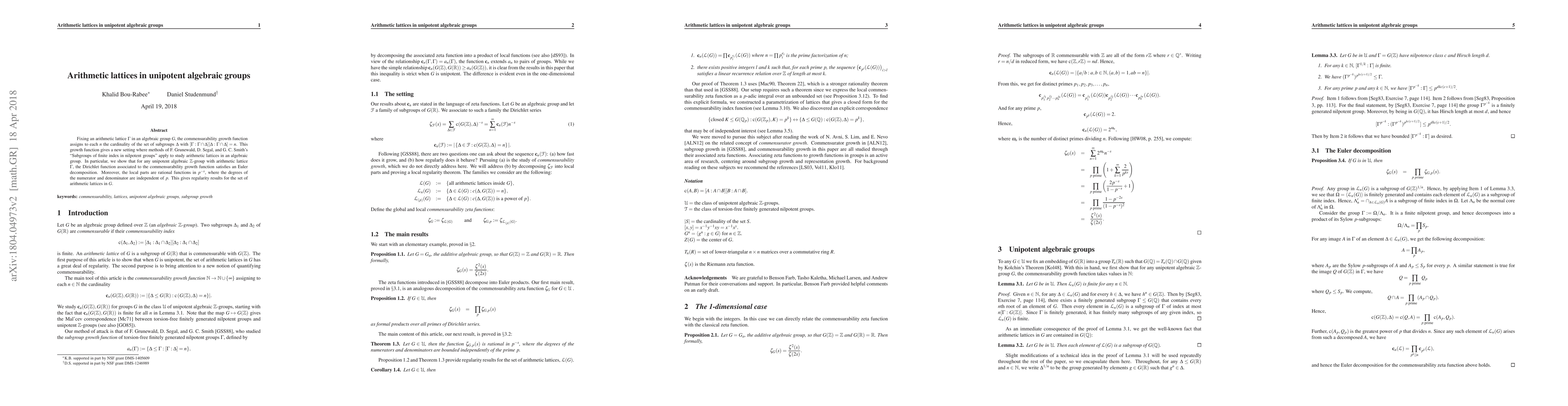 Researchers explore arithmetic lattices in unipotent algebraic groups, finding that a specific function related to subgroup growth has an Euler decomposition with rational local parts, providing regularity results for lattice sets.