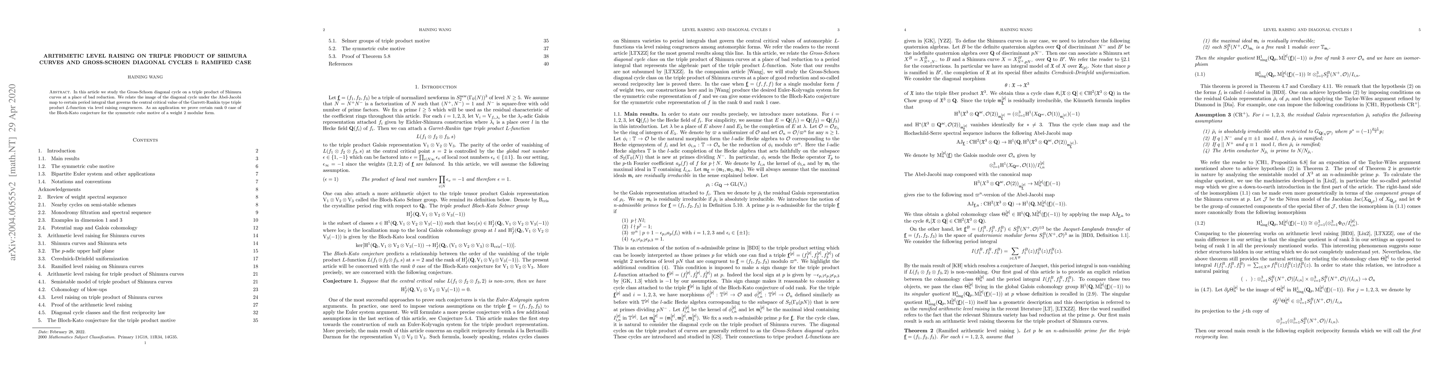 This paper studies the Gross-Schoen diagonal cycle on triple products of Shimura curves and relates it to period integrals and level raising congruences, with implications for the Bloch-Kato conjecture in modular form theory.