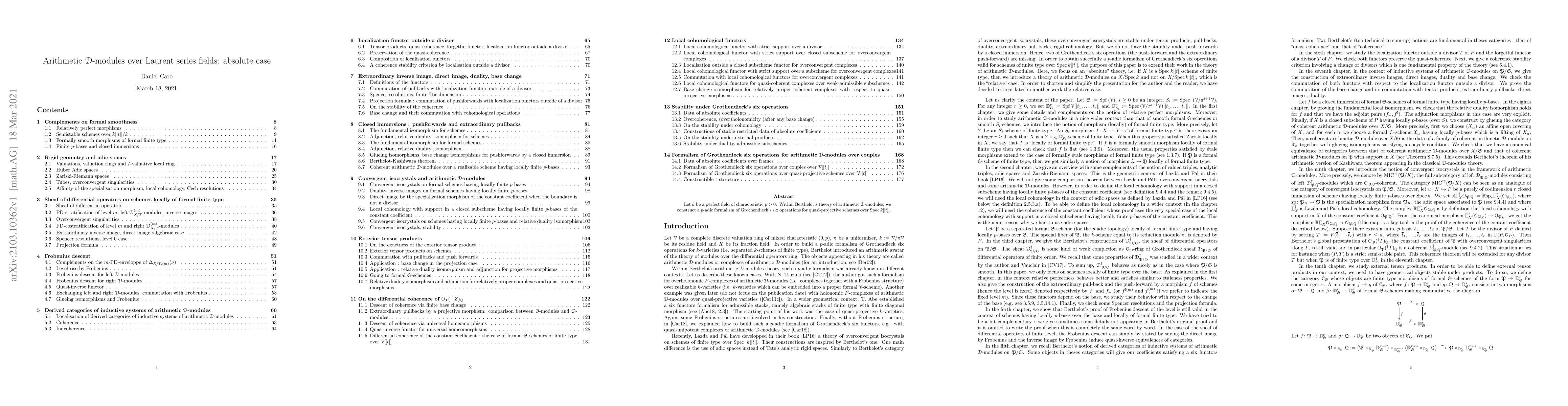 Researchers develop a p-adic formalism for quasi-projective schemes over the Laurent series field k[[t]], applying Berthelot's theory of arithmetic D-modules to perfect fields of positive characteristic p.